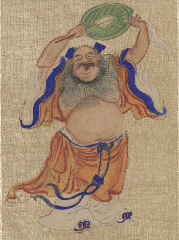 漢鍾離以“芭蕉扇”聞名,其形象特徵是頭梳髽髻,髯長過腹,手執扇子,袒胸露乳,一副豪爽大氣的樣子。