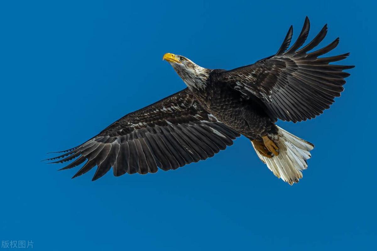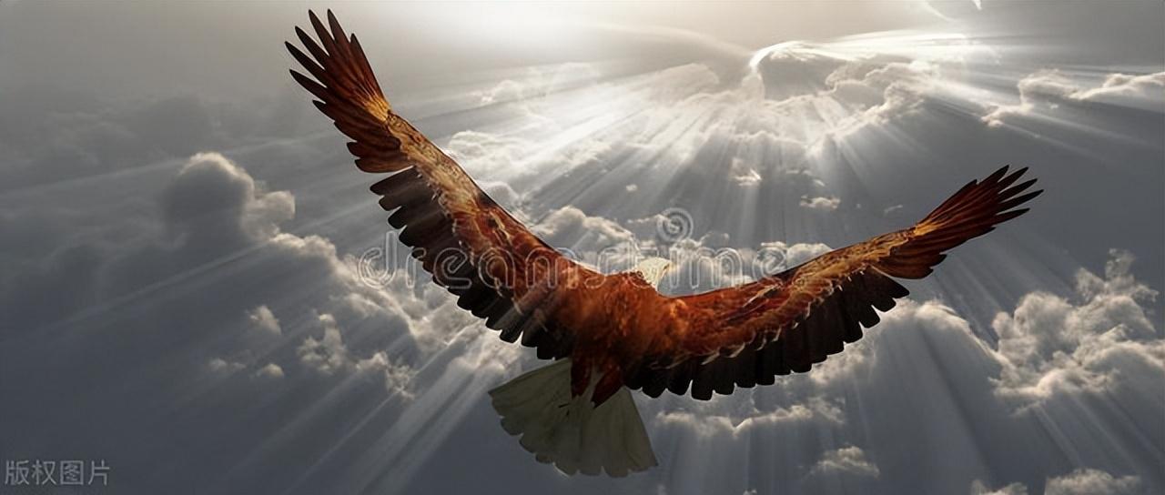 雄鷹展翅碧空翔,銳目閃電瞰八方。