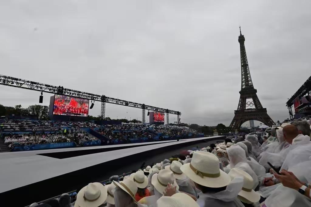 遊艇滿載健將匯,塞納河畔沸騰迎。