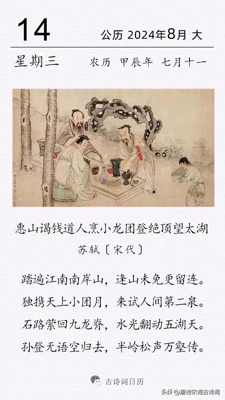 蘇軾《惠山謁錢道人烹小龍團登絕頂望太湖》