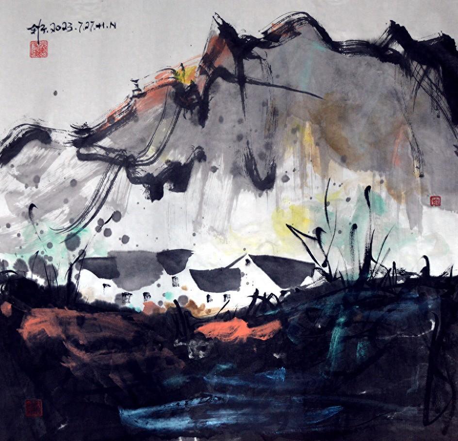 我是靠感覺提示來畫畫的,但是,感覺像流水一樣,特別是畫水墨畫,水分、宣紙、毛筆、墨韻很難掌握,有的時候就如同洪水氾濫,超出範圍且肆無忌憚。有的時候是乾裂晦澀不順暢,氣場不夠凝聚鬆散一片。如何把水墨畫潤溼透的感覺表現的淋漓盡致了,那意境與藝術性以及水墨畫的特殊性就達到了。