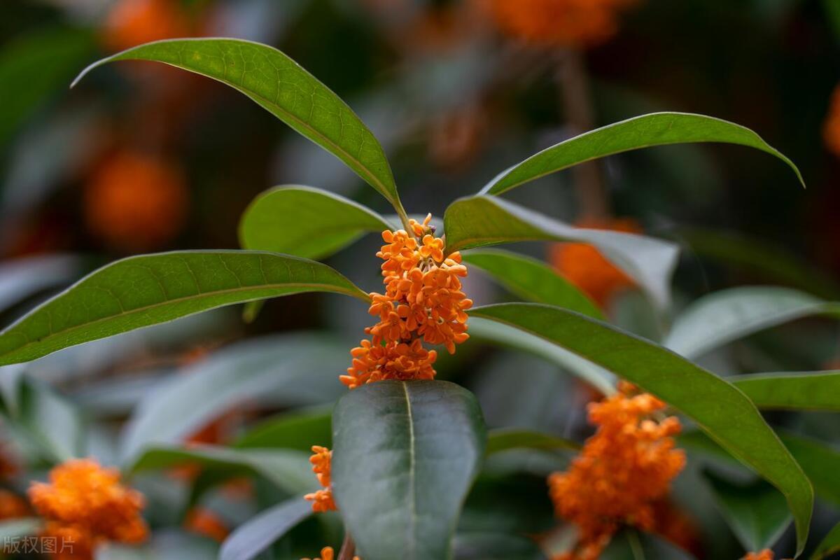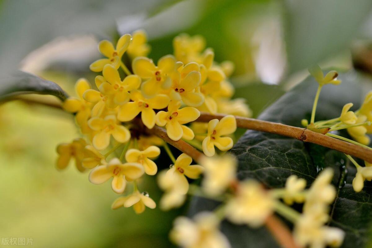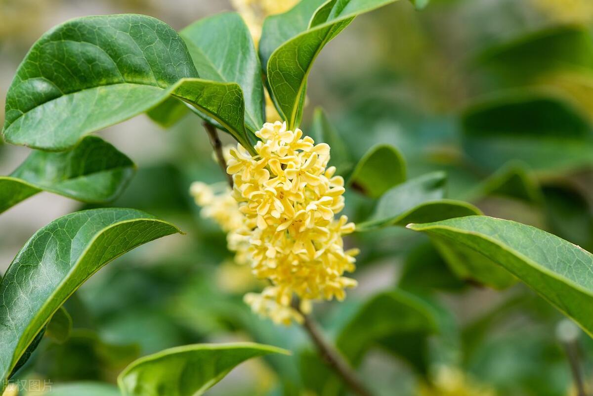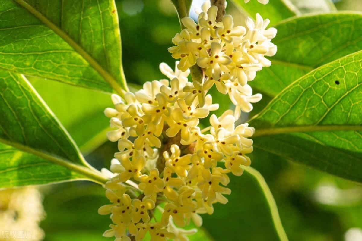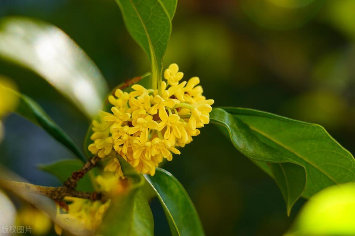 馥郁清雅桂花仙,葉綠油靚橢圓狀。