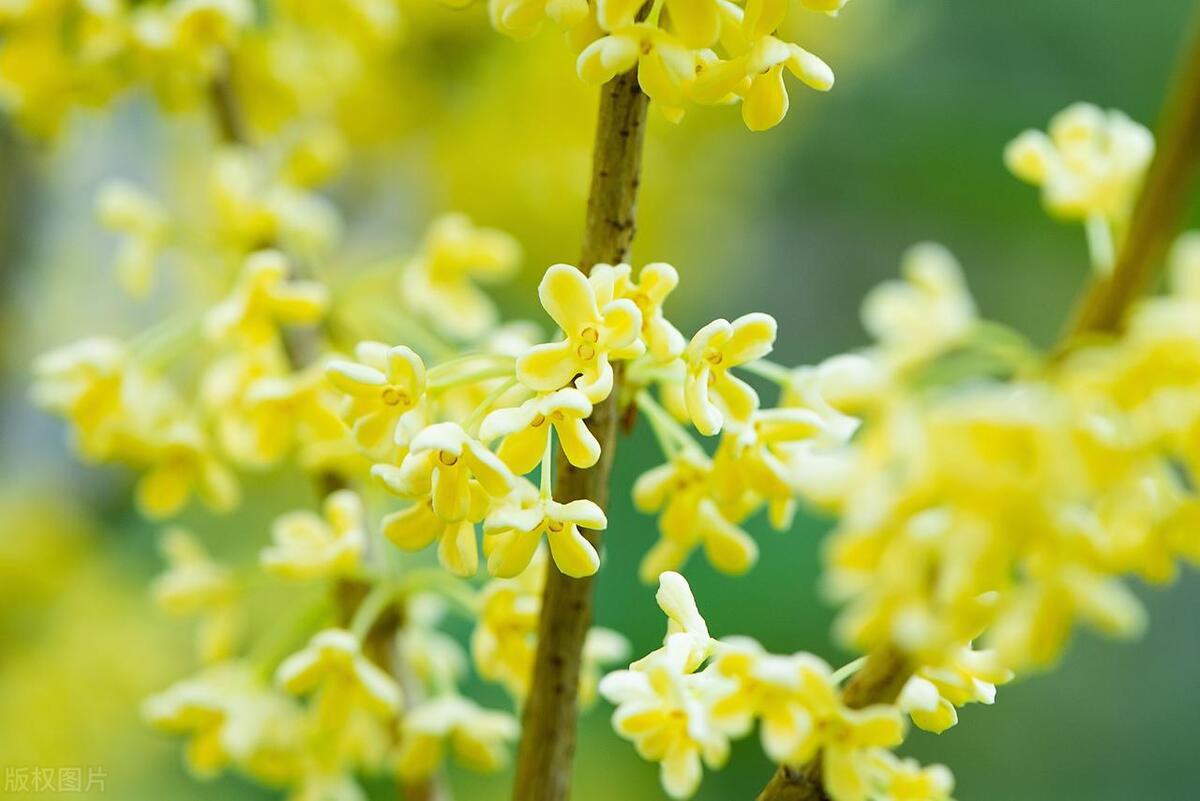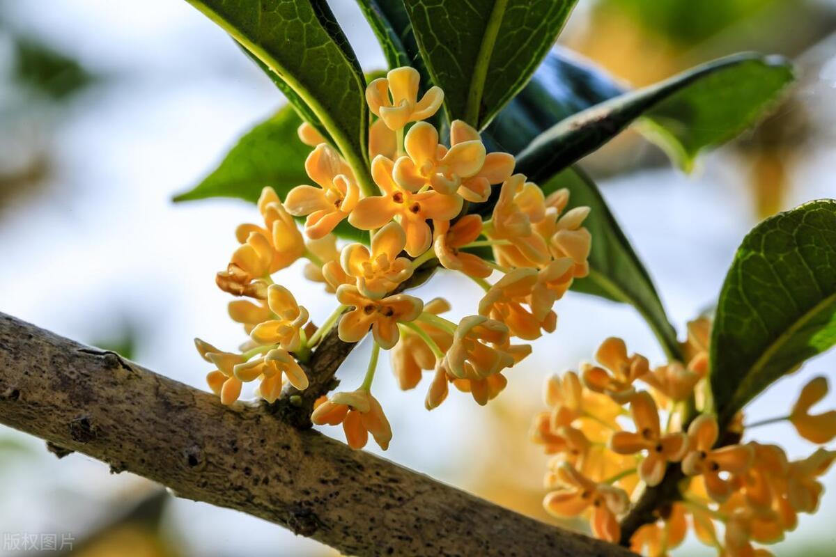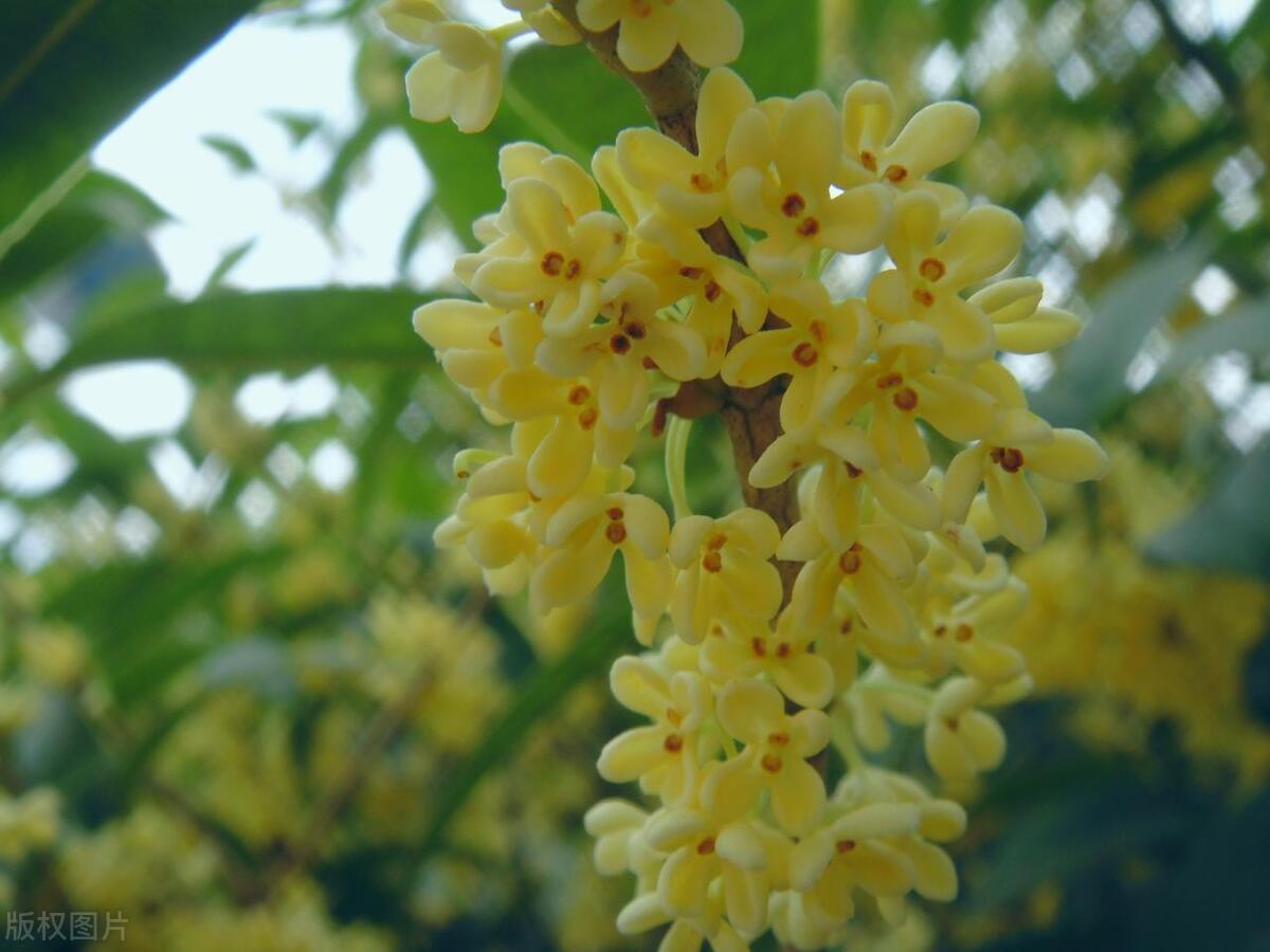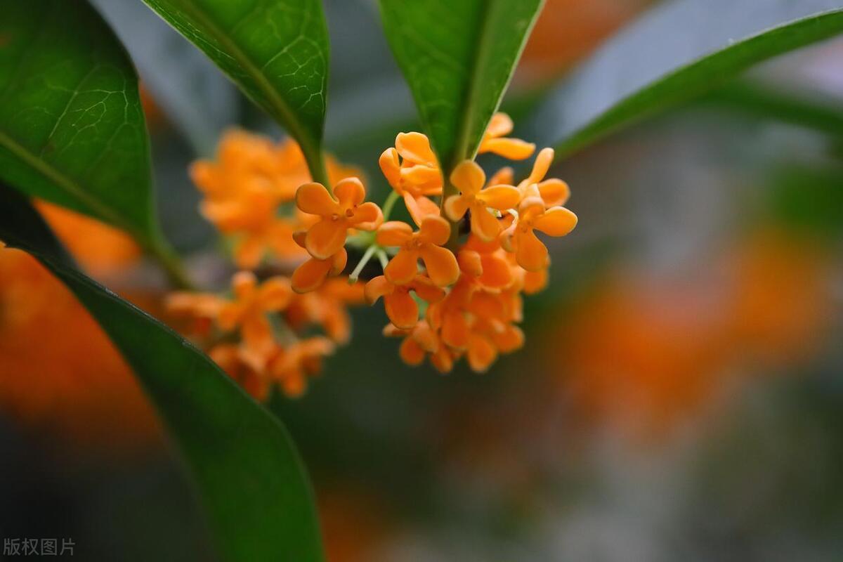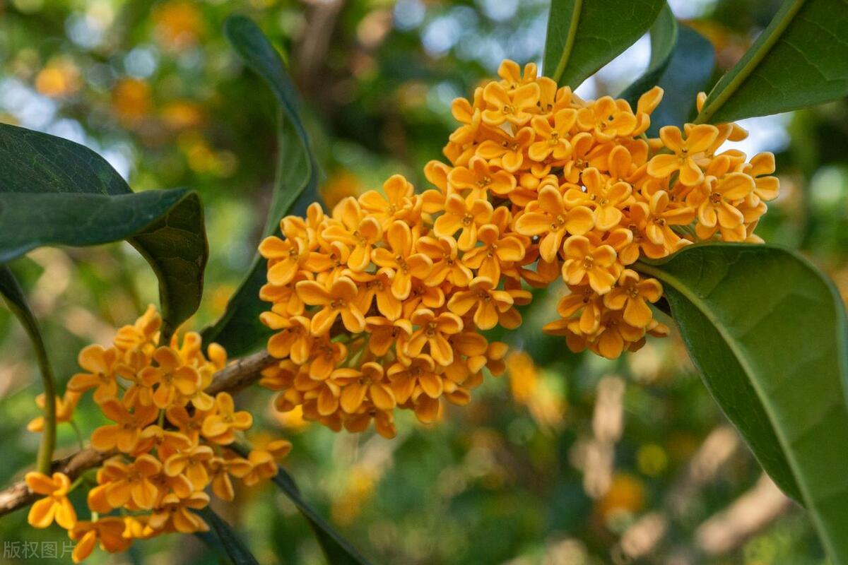 馥郁清雅桂花仙,葉綠油靚橢圓狀。