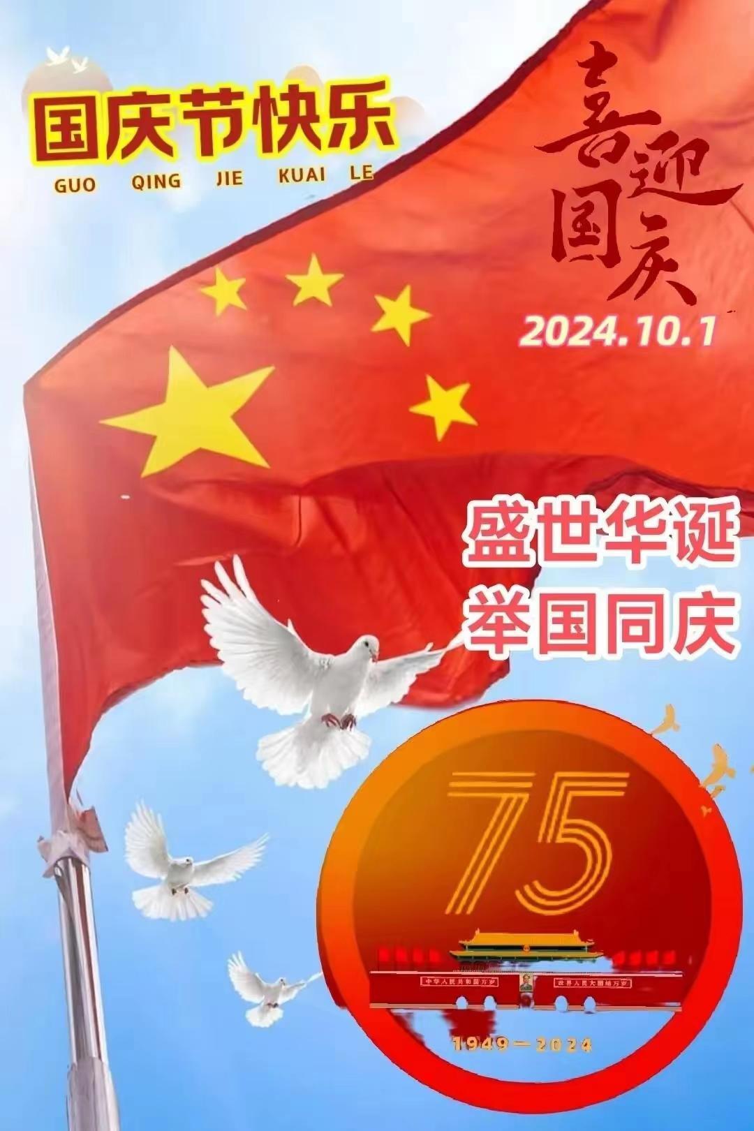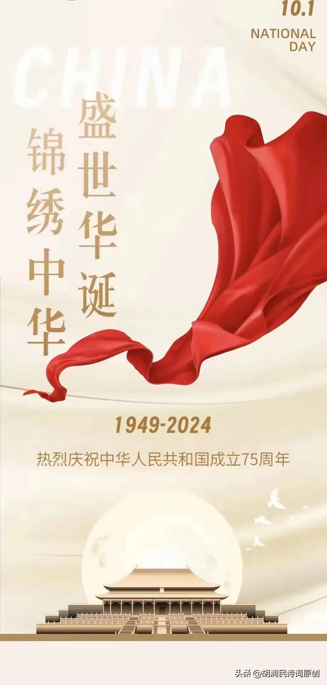 華夏大地,金秋碩果,萬里飄香。望錦繡江山,盛世中華,繁榮昌盛,屹立東方。建國伊今,七五華誕,千秋偉業鑄輝煌。耀榮光,看祖國強大,壯懷激放。