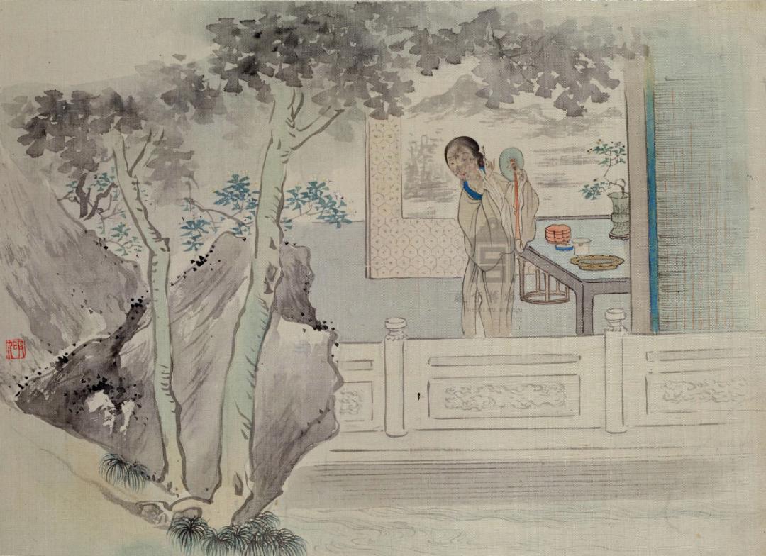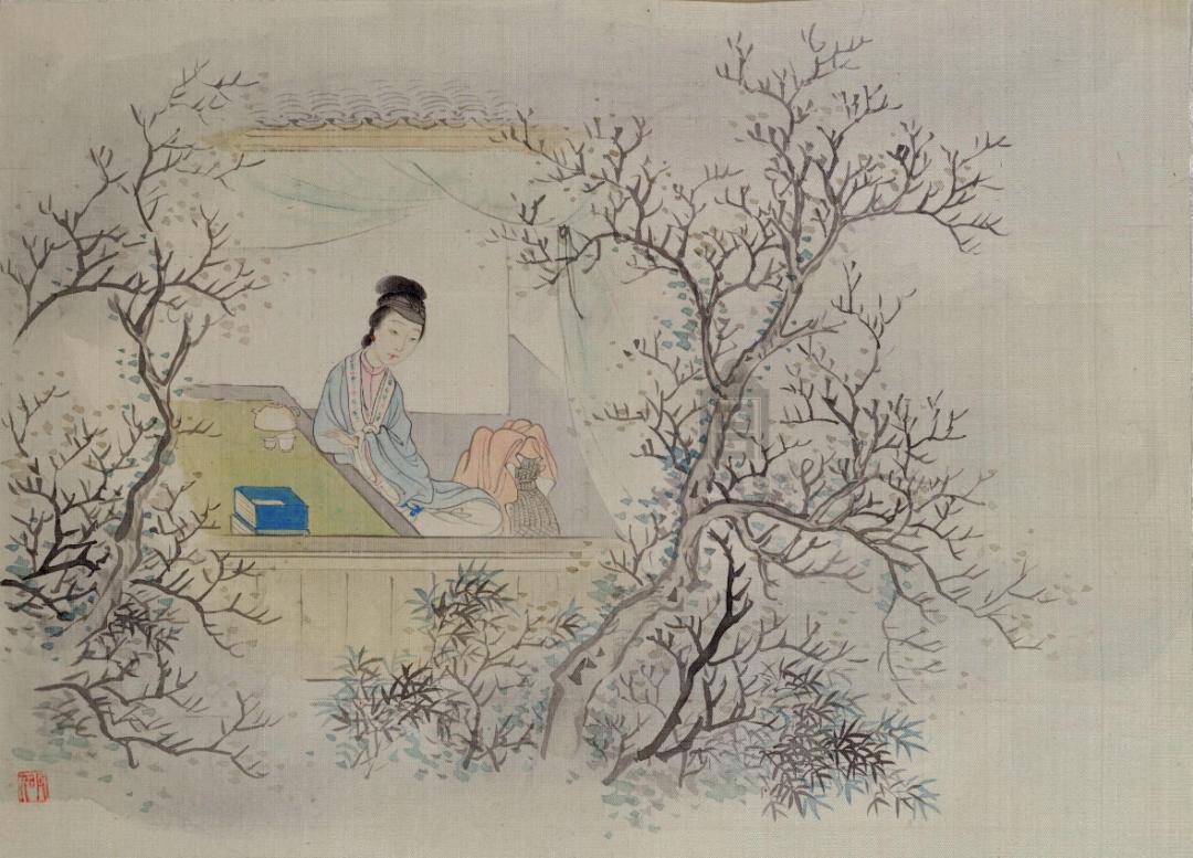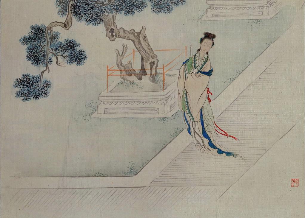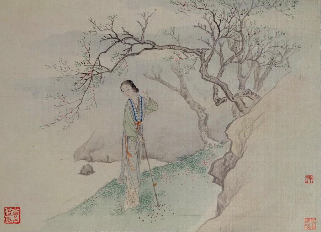 《十二金釵圖》冊,清,費丹旭繪,絹本,設色,每開縱20.3釐米,橫27.7釐米。現藏於故宮博物院。
