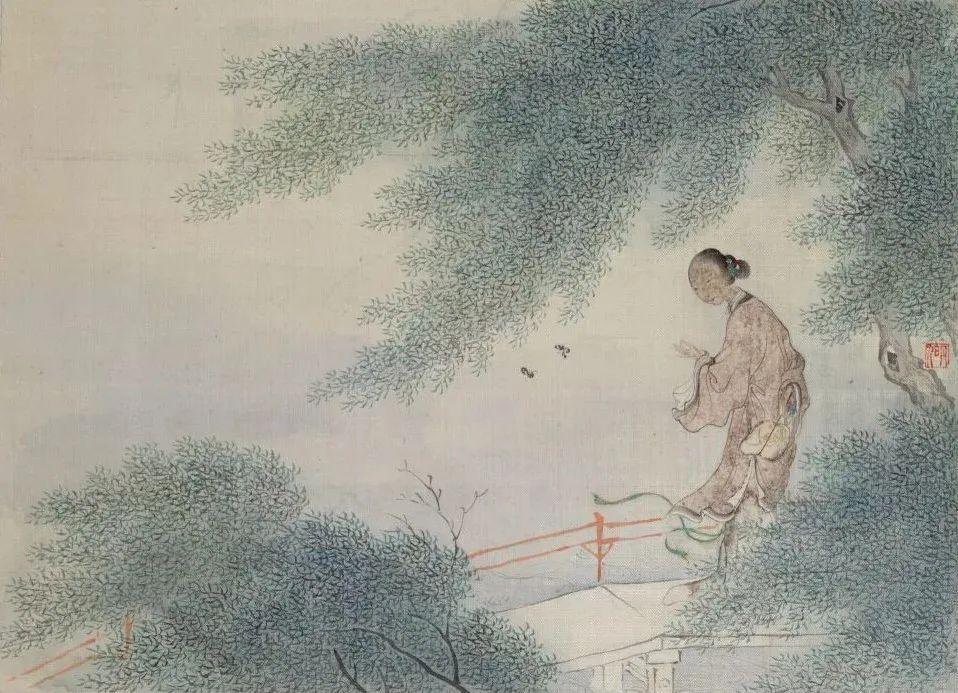 “寶釵撲蝶”出自《紅樓夢》第二十七回“滴翠亭楊妃戲彩蝶 埋香冢飛燕泣殘紅”。這天,寶釵在花叢賞春撲蝶,循至滴翠亭,聽見丫鬟的對話……“滴翠亭事件”讓讀者對寶釵褒貶不一。