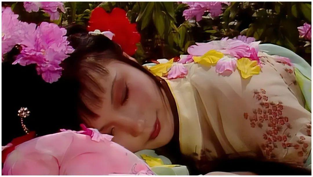 “憨湘雲醉眠芍藥裀”是公認《紅樓夢》最美的場景之一。塑造了湘雲純真、美麗、憨態可掬的少女形象。原文寫道:果見湘雲臥于山石僻處一個石凳子上,業經香夢沉酣,四面芍藥花飛了一身,滿頭臉衣襟上皆是紅香散亂,手中的扇子在地下,也半被落花埋了,一羣蜂蝶鬧穰穰的圍着她,又用鮫帕包了一包芍藥花瓣枕着。