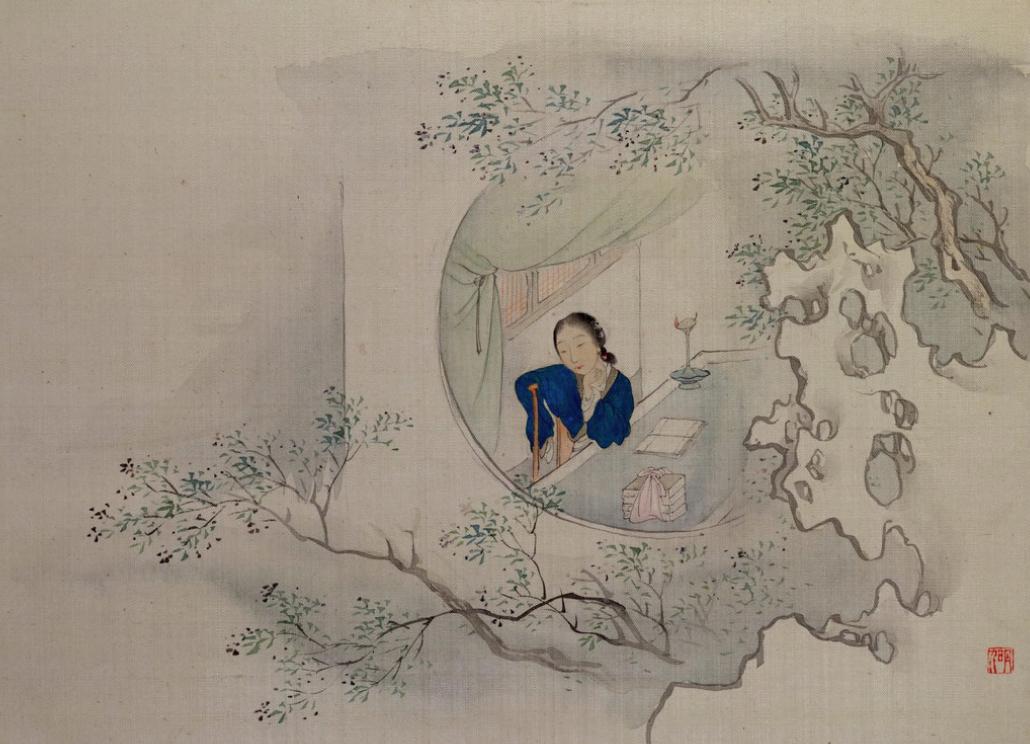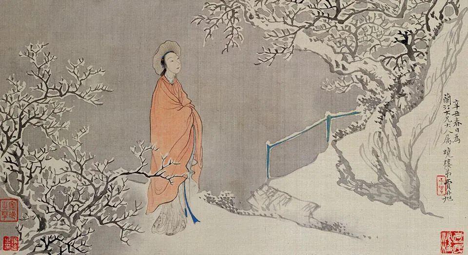 費丹旭以仕女畫著稱,筆下女子柔弱輕靈。他將《紅樓夢》中各具特點的12位女性繪製成冊,林黛玉、薛寶釵、史湘雲、賈迎春、賈惜春、李紈、巧姐……生動地刻畫出她們栩栩如生的形象。