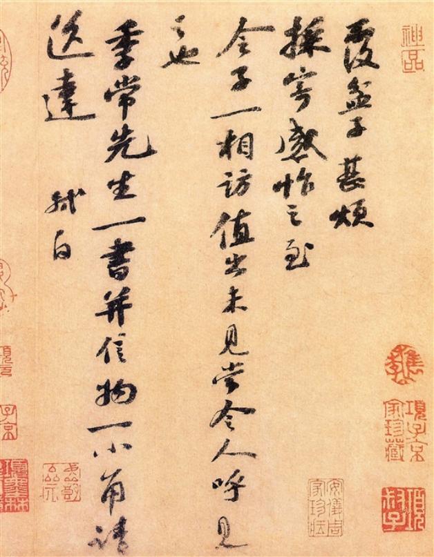 大意:朝中公務繁忙,沒有閒暇問候您,今天天氣晴朗,想必您的身體也安穩無恙。很久前借走的兩幅畫已經歸還給您,希望您檢查一下。想借您收藏的制墨名家李承晏、張遇所制名墨欣賞,若李承晏墨如是完整的真品,願以自藏的王羲之《異熱帖》交換。篇幅有限,不再詳細說了,紹彭再拜。這是一封薛紹彭與藏友談論藏品觀摩與交流事宜的書信。信的上款“大年太尉”,據考證應是北宋宗室、名畫家趙令穰。欣賞這些形態各異的“接地氣”書法作品,讓人不得不感嘆古人的真性情。他們用筆墨揮灑出的不僅是藝術的魅力,更是生活的點滴趣味。這些書法作品提醒着我們,藝術並非高高在上的奢侈品,而是可以融入生活、觸動心靈的美好存在。或許,當我們再次面對那些古老的書法作品時,不再僅僅驚歎於其精湛的技藝,還可以從中感受到古人的幽默、智慧與對生活的熱愛。