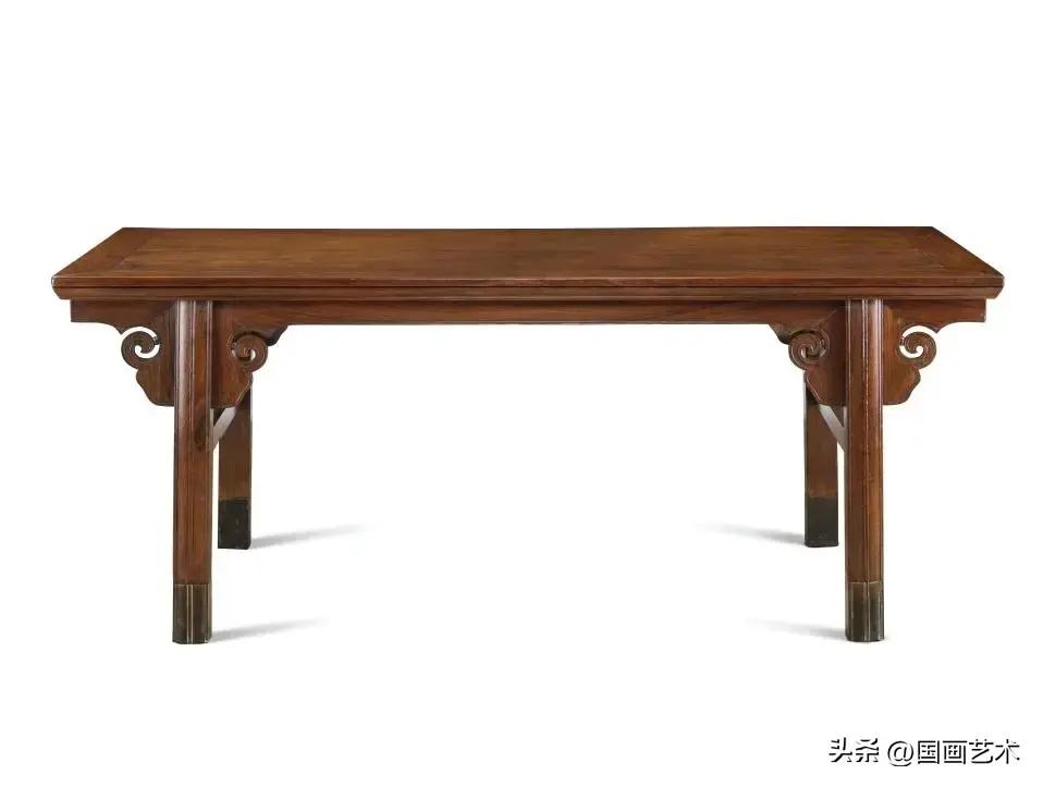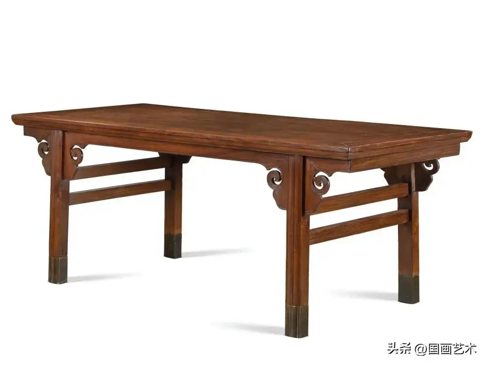 黃花梨夾頭榫雲紋牙頭大畫案