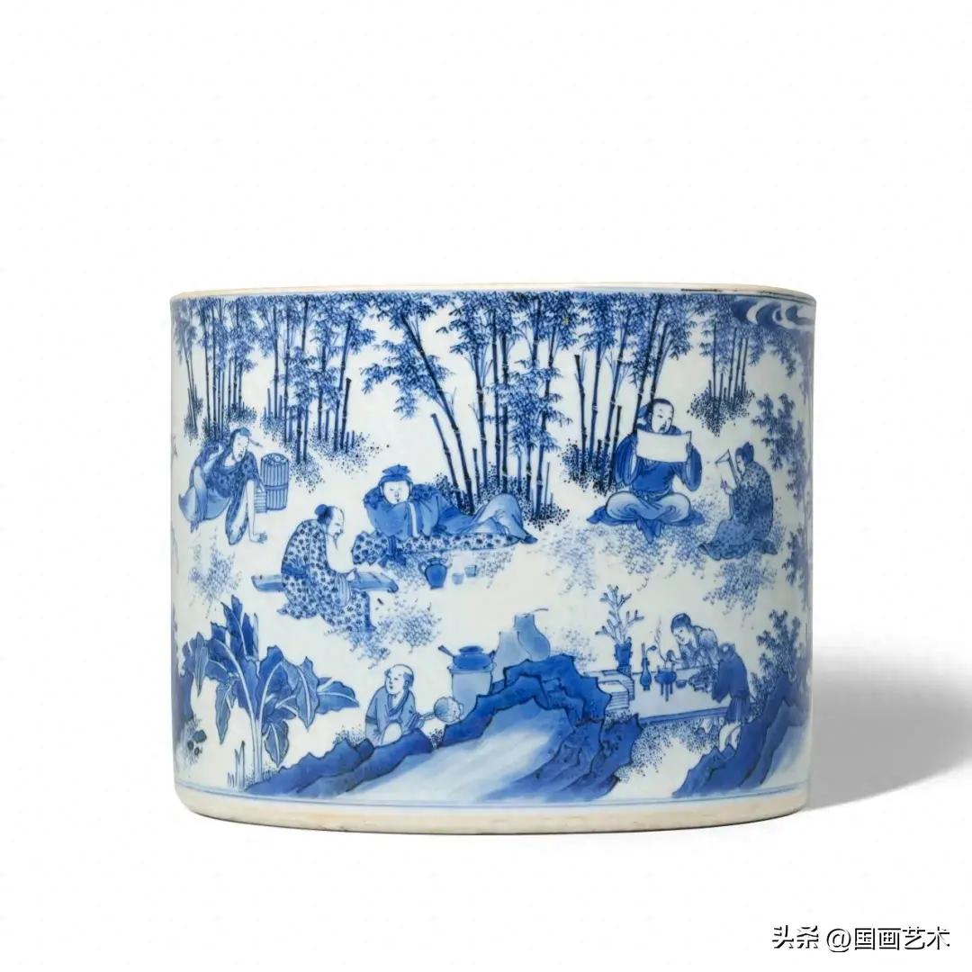 明崇禎 青花竹林七賢圖筆筒