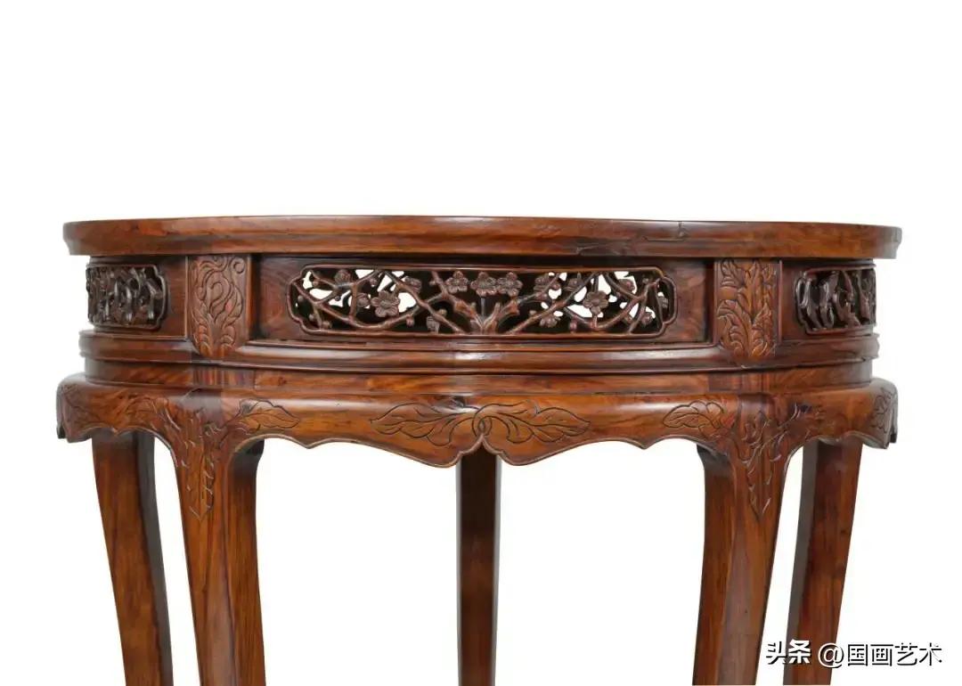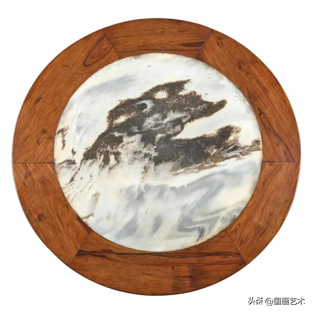 黃花梨嵌大理石五足高束腰圓幾