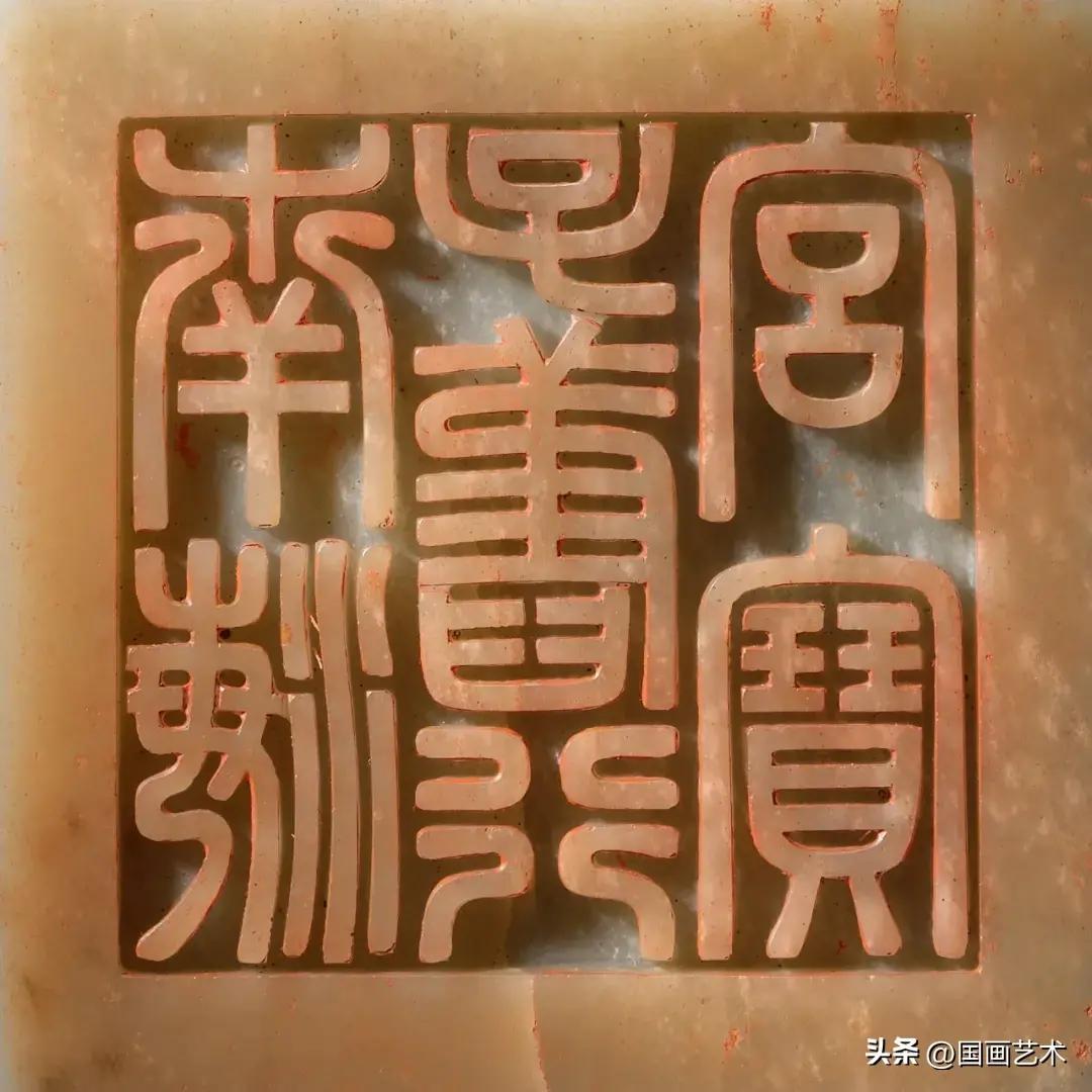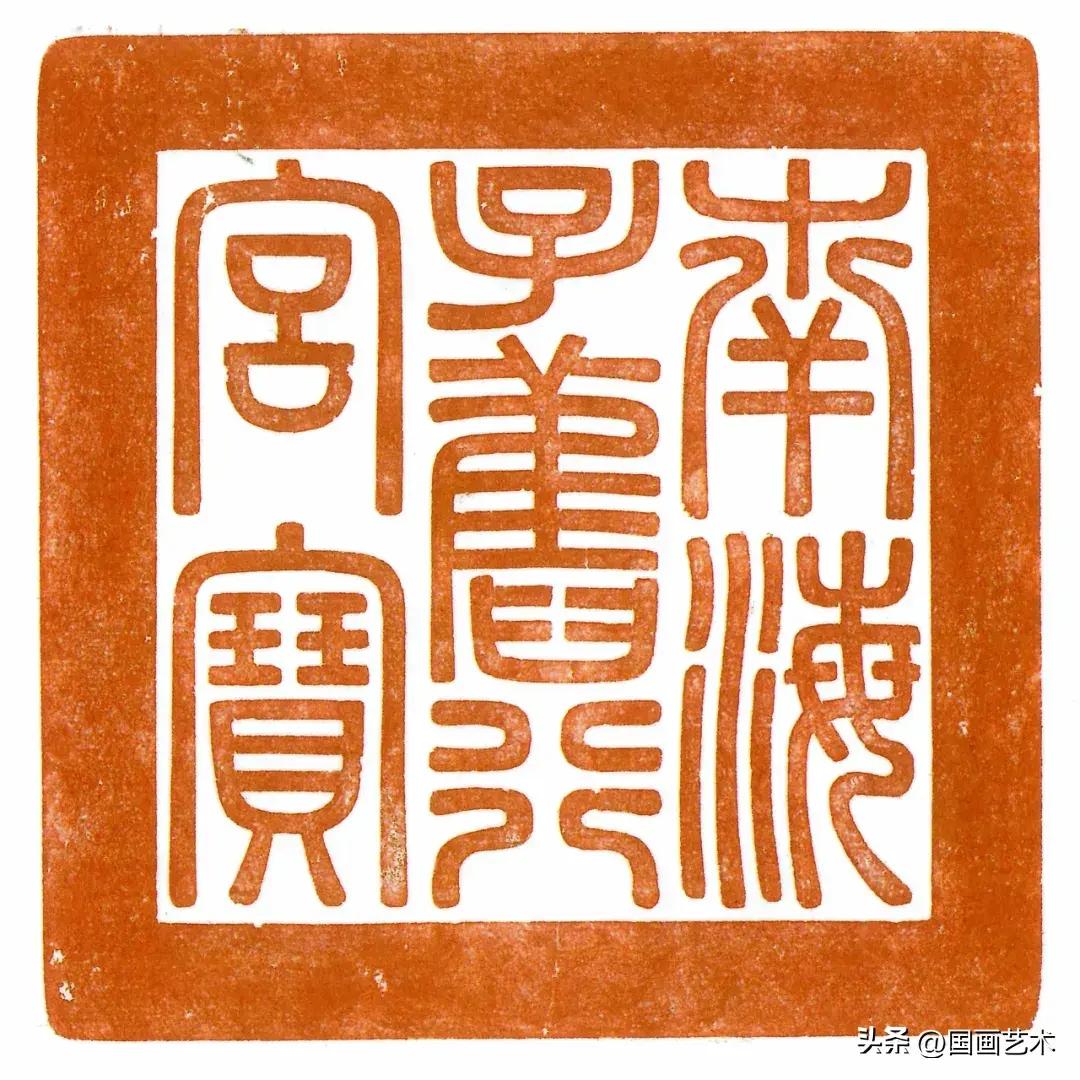 此璽青玉質,交龍鈕,通高9.8釐米,印面13釐米見方,寶文爲陽文“南海子舊行宮寶”七字。此寶在北京故宮現藏《乾隆寶藪》中有明確著錄。無論是質地、體量大小,還是篆法佈局都與《寶藪》中的記載相合。乾隆皇帝曾特意爲南海子行宮刻制了四枚宮殿寶,規格一致,皆爲青玉所制,約13釐米見方,“南海子舊行宮寶”便是其一。