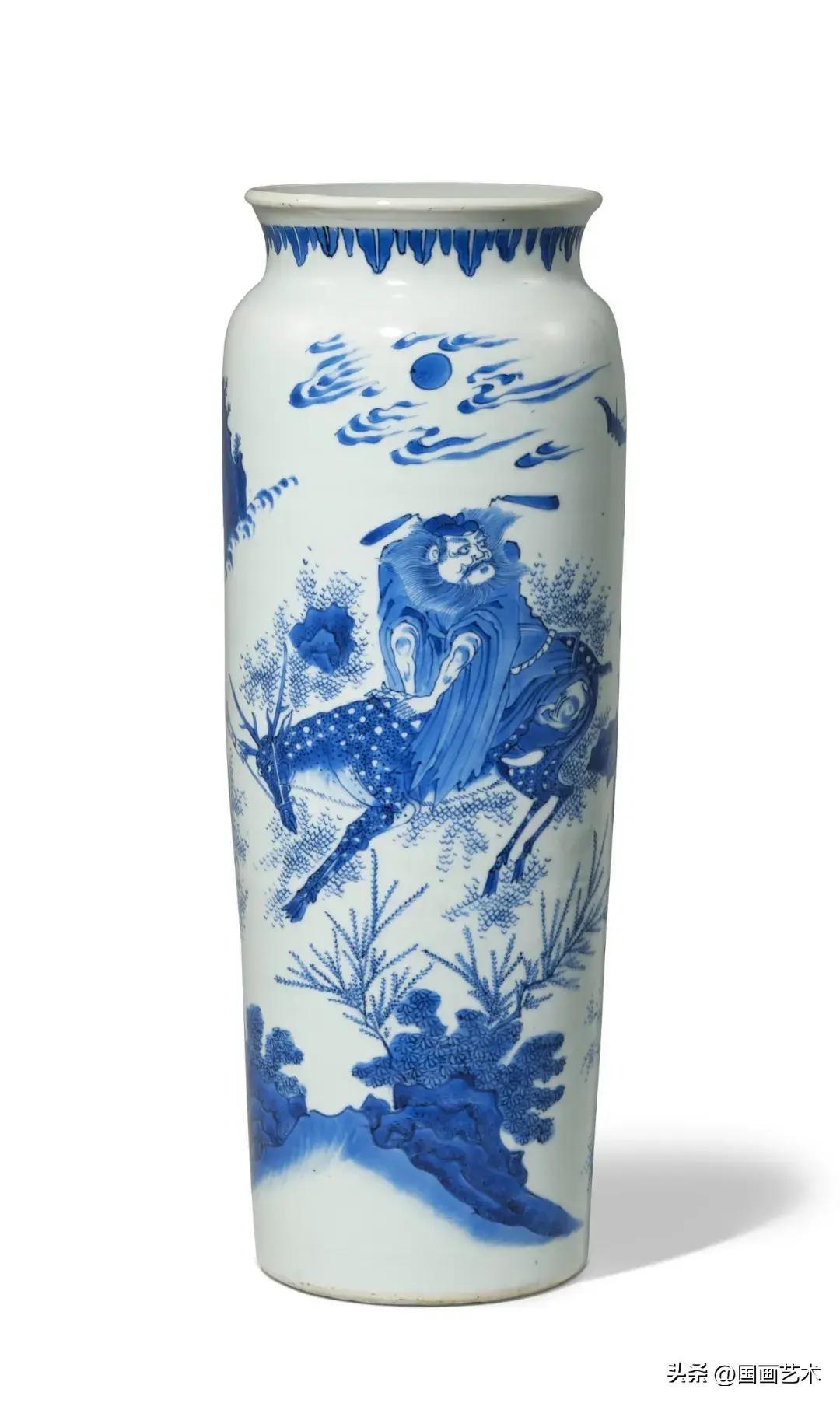 明崇禎 青花鐘馗福祿圖筒瓶