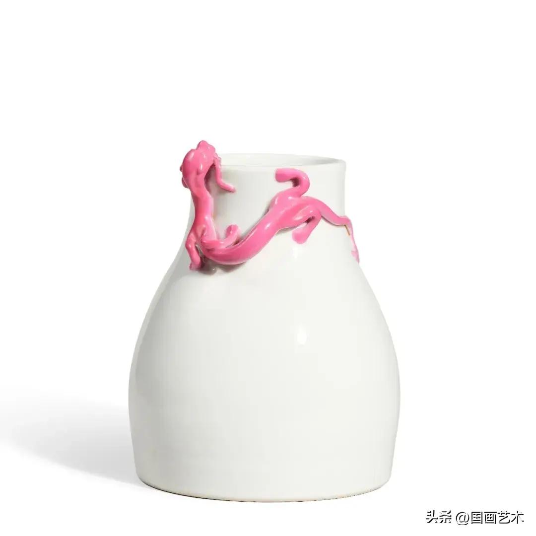 十八世紀 白釉胭脂紅彩蟠螭紋尊