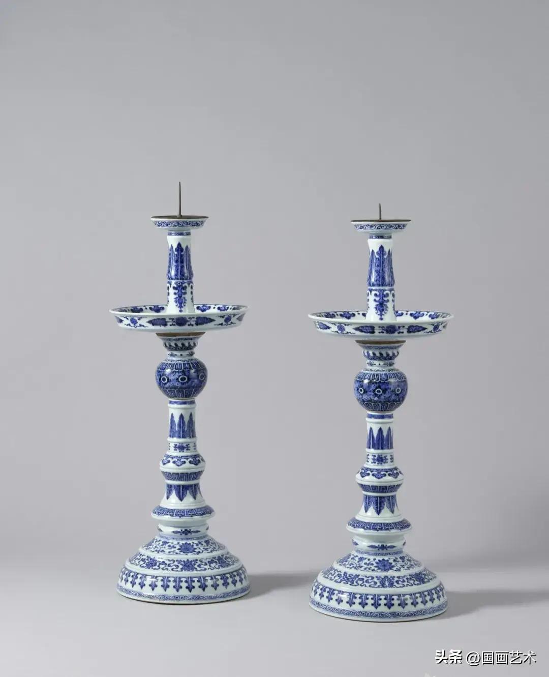 清雍正/乾隆 青花八吉祥紋燭臺一對