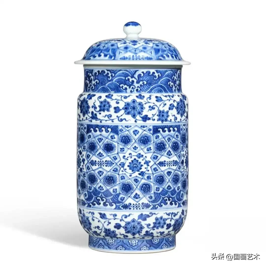 清乾隆 青花圓筒形錦紋蓋罐