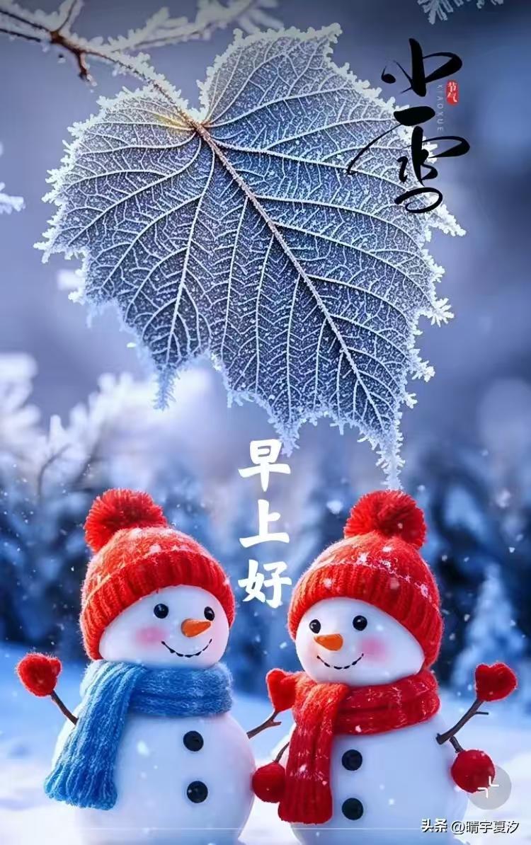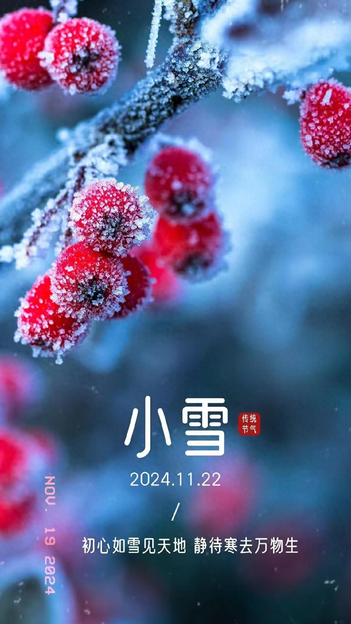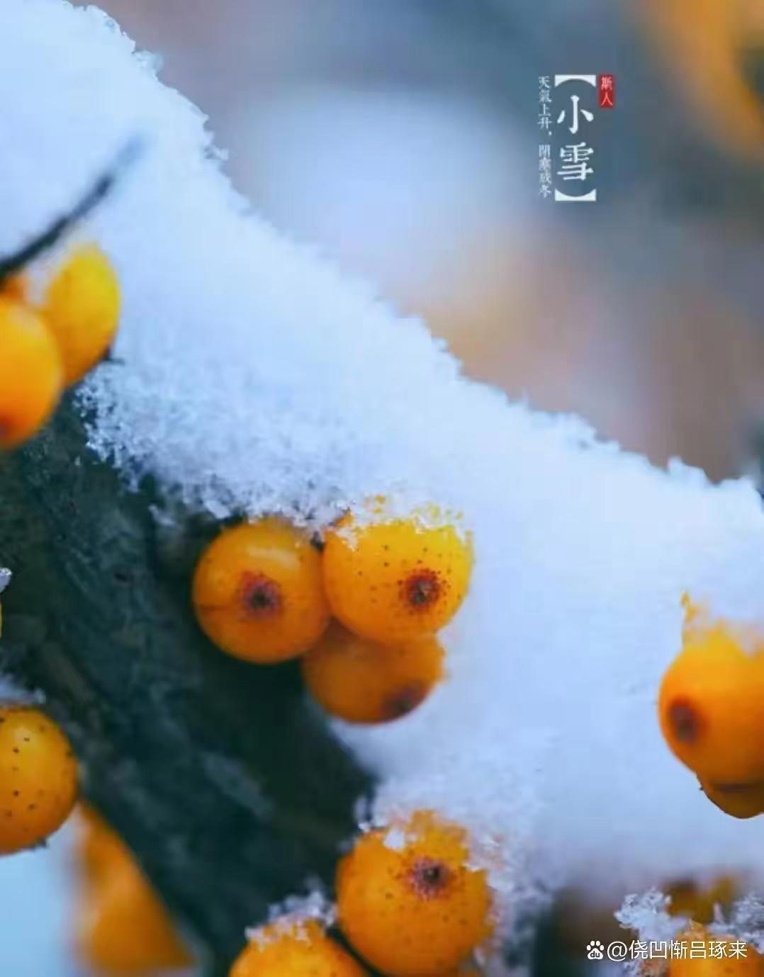 小雪節氣漸冷寒,松柏挺拔凝霜間。