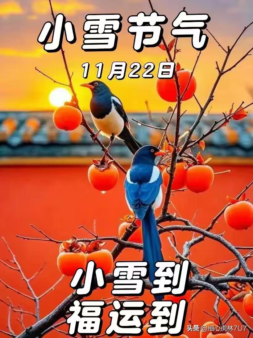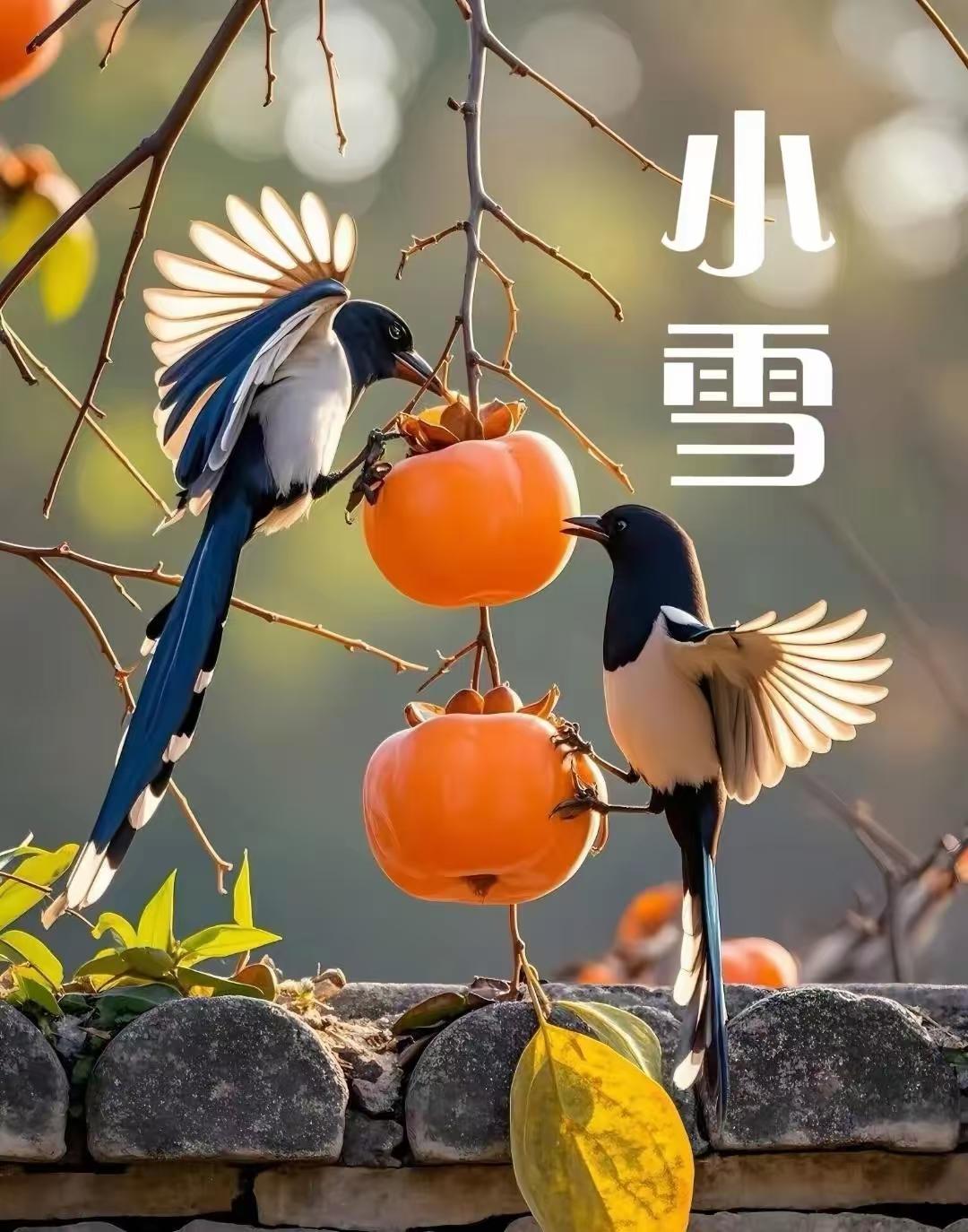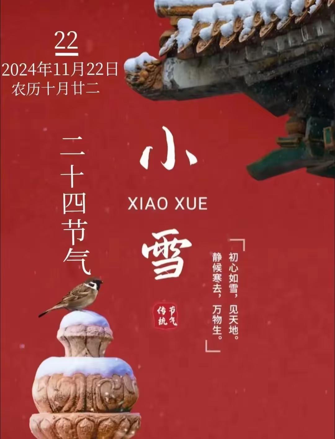 小雪節氣漸冷寒,松柏挺拔凝霜間。