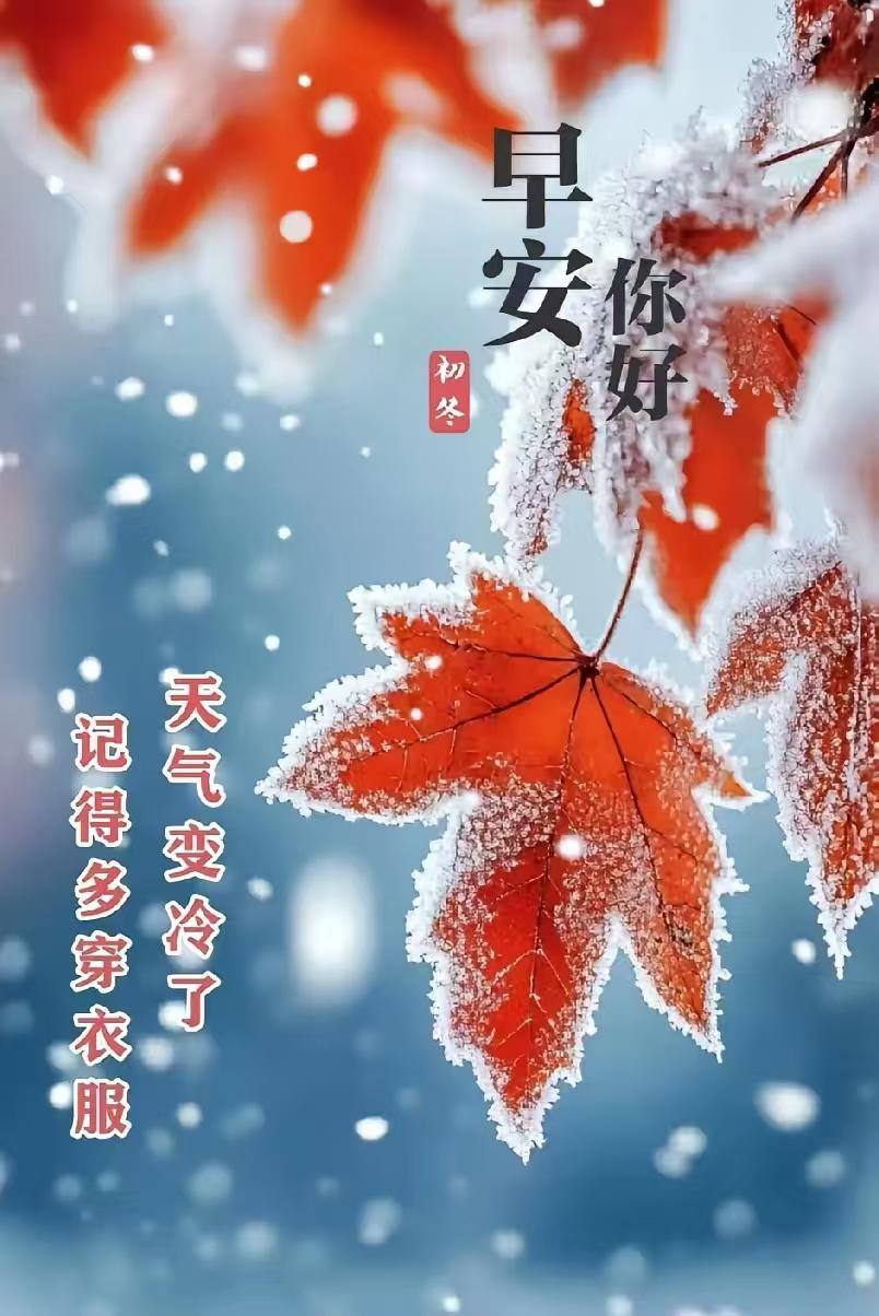 楓葉欲殘紅韻濃,梅花飄雪沁馨香。