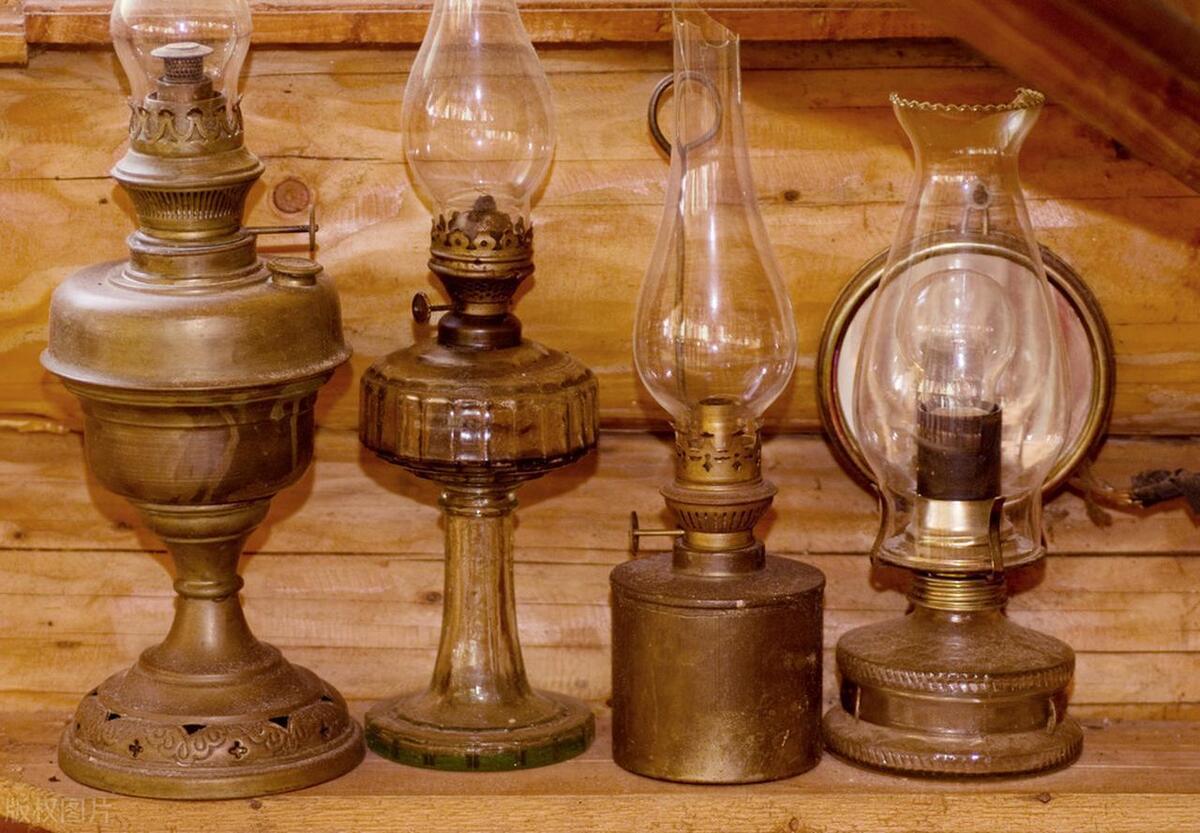 今朝油燈列古董,電燈照明繁盛行。