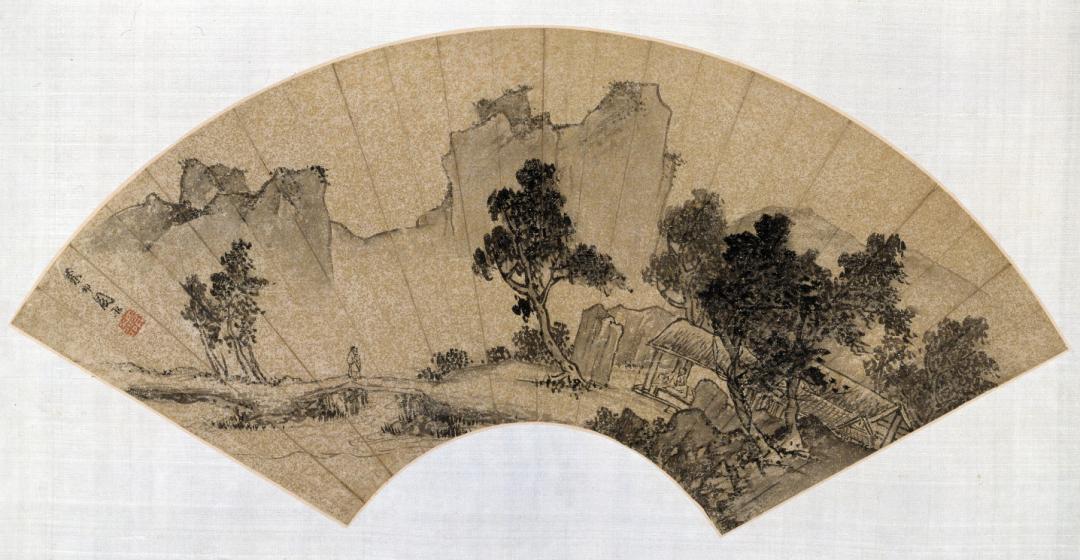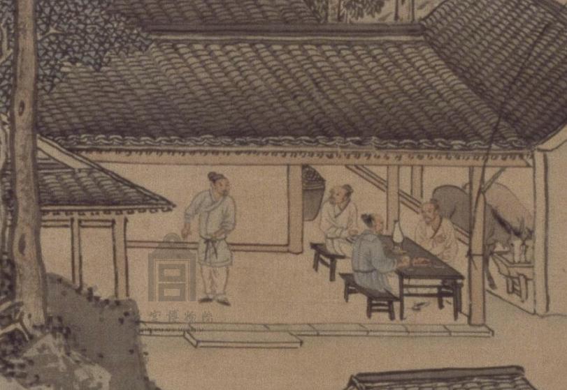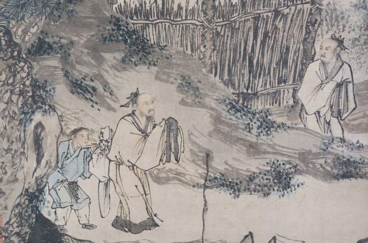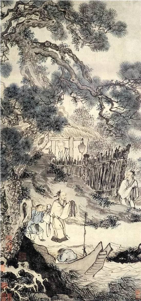 南京博物院收藏的周臣代表作《柴門送別圖》 ,描繪了一文人攜琴訪友後,主客分別時依依不捨的情景。
