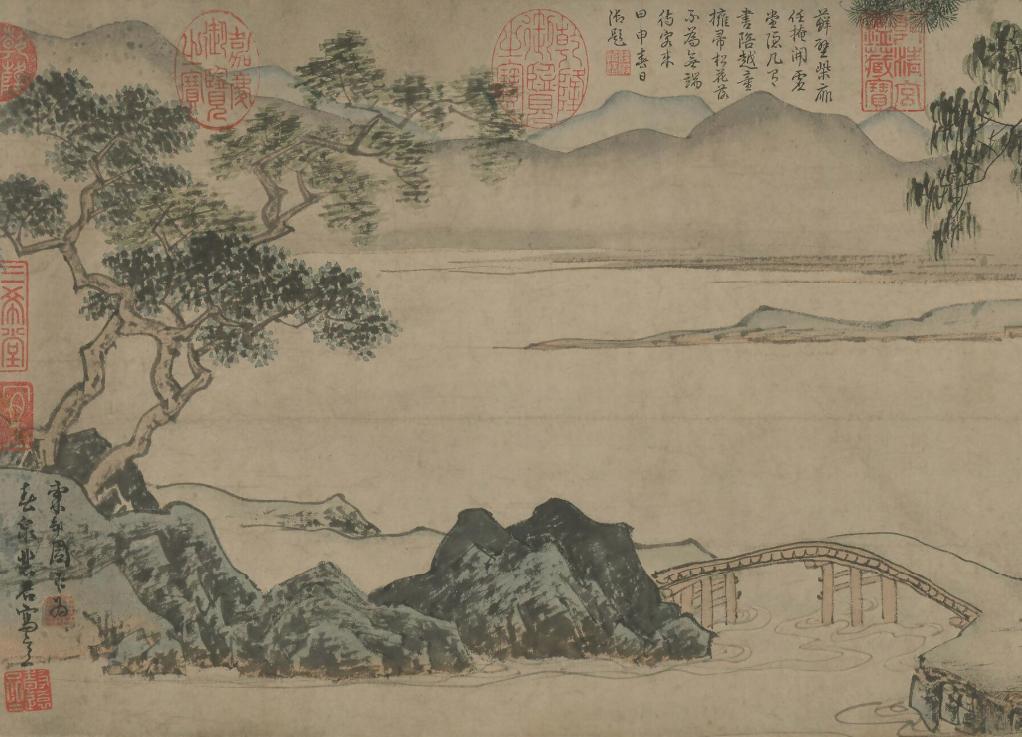 作爲一位勤奮的職業畫師,周臣曾刻苦臨摹李成、郭熙、李唐、馬遠等大家的作品。
