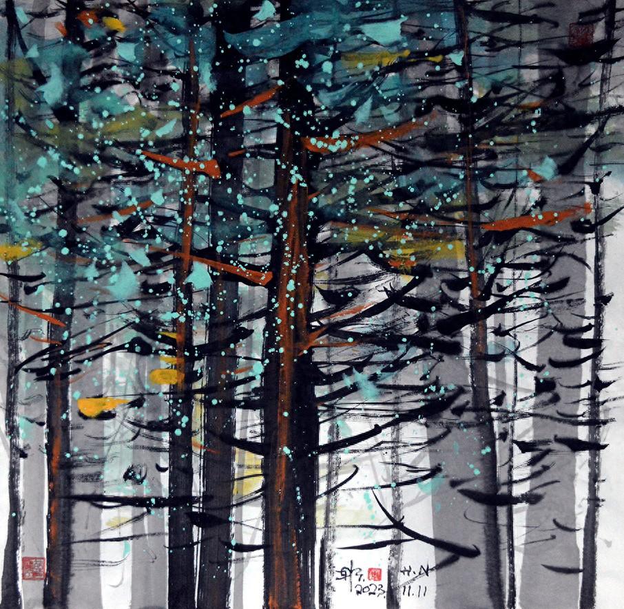 在繪畫表現形態元素裏,少不了對於樹的刻畫。當我們把樹賦予擬人化加以情感的表現,它就形成了我們情感的載體,具有了傳遞我們情感電波效應,有了被人類意識感悟接收的功能,從而形成了我們視覺感官交流的語言,彼此心照不宣而領悟到了人類精神層面的含義。