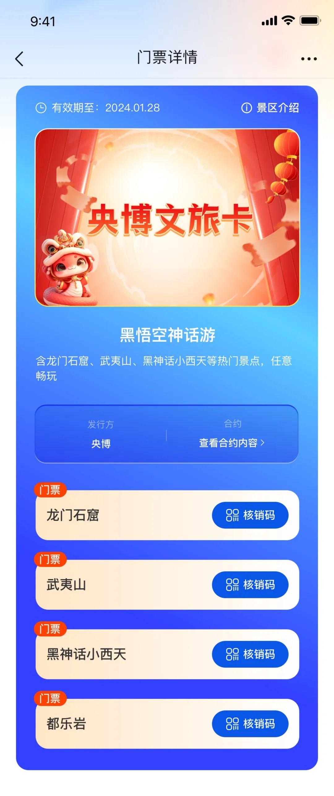長效福利·持續加碼:蛇年全年將陸續新增景區,並推出“央博文旅卡”,實現“一碼通行百景”。持卡用戶可暢想海量文旅票一卡通。