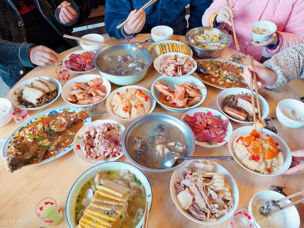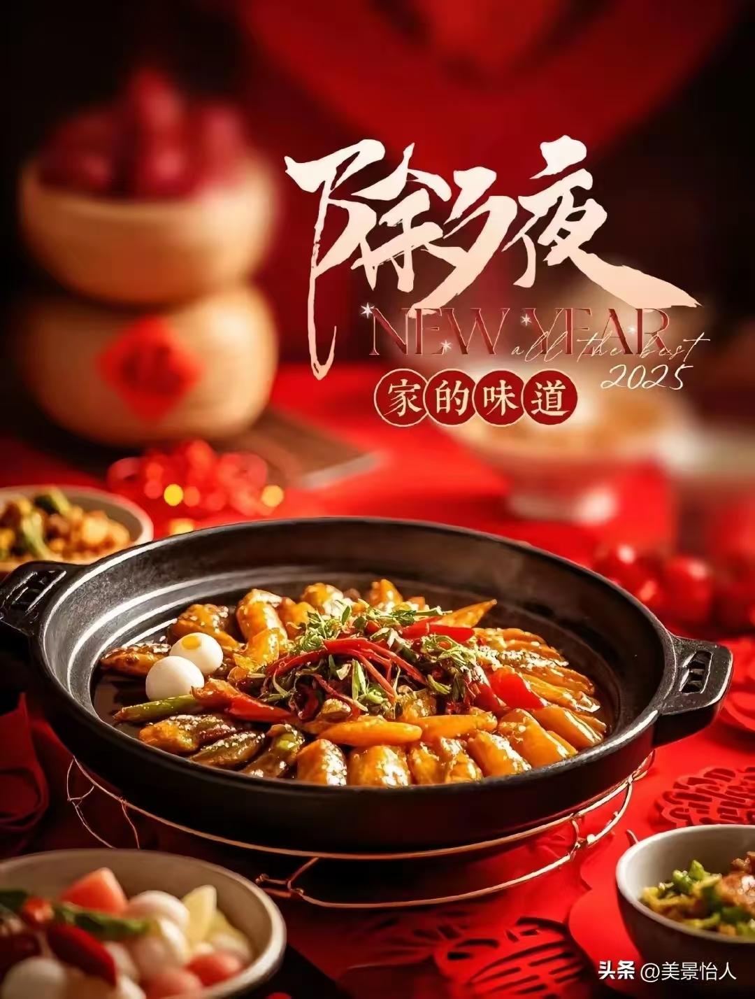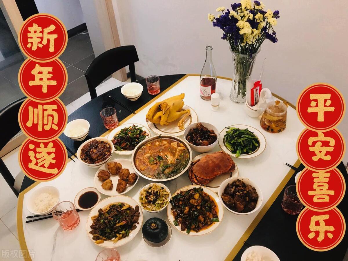 歲末年夜,烹飪佳餚,滿屋飄香。看紅燒牛肉,色澤鮮豔;炸炒魚蝦,金黃鋥亮。時鐘敲響,飯菜豐盛,歡聲笑語馨盪漾。舉碰杯,祝福祈闔家,快樂安康!