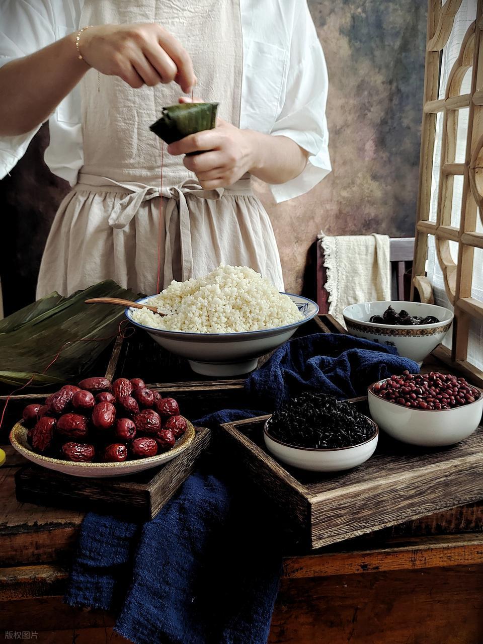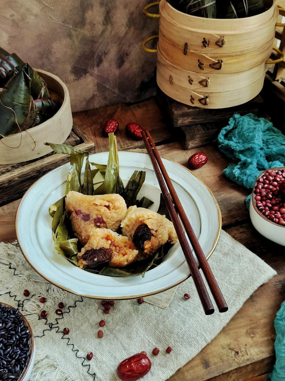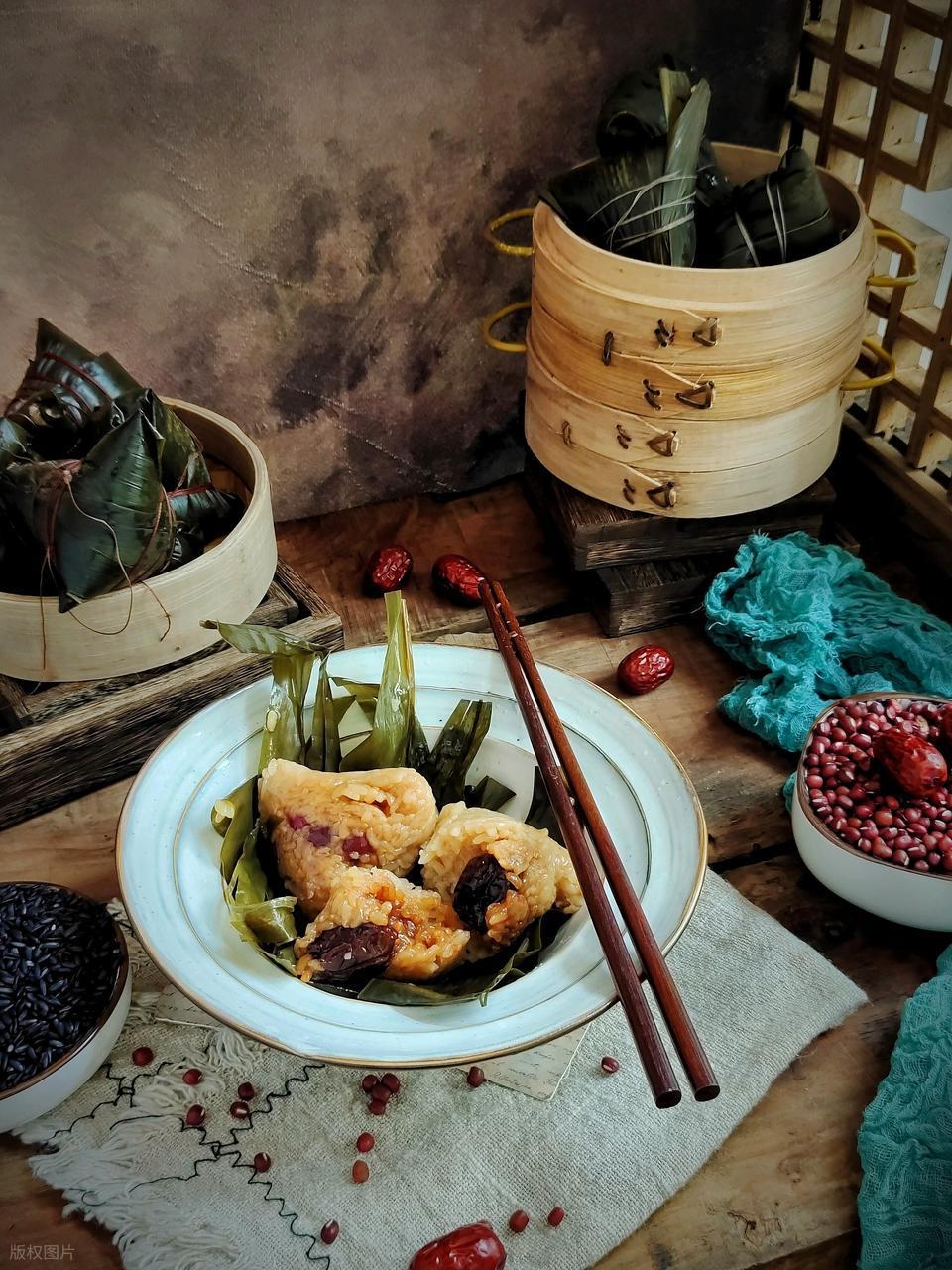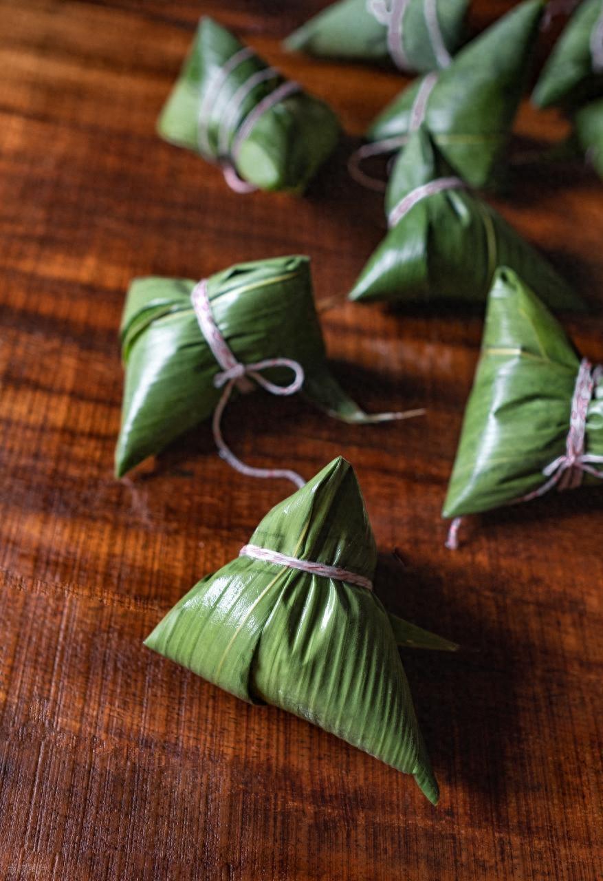 竈房裏飄出葦葉的清香。母親將泡得發亮的黍米攏進碧綠的葉鞘,指尖翻飛間,菱角似的糉子便攢成一串翡翠鈴鐺。北人包糉子不用竹箬,河塘邊採來的蘆葦葉帶着水腥氣,蒸熟後卻會沁出特有的草木香。柴竈裏的火苗舔着鐵鍋,水汽氤氳中,那些青翠的棱角漸漸染上琥珀色。
