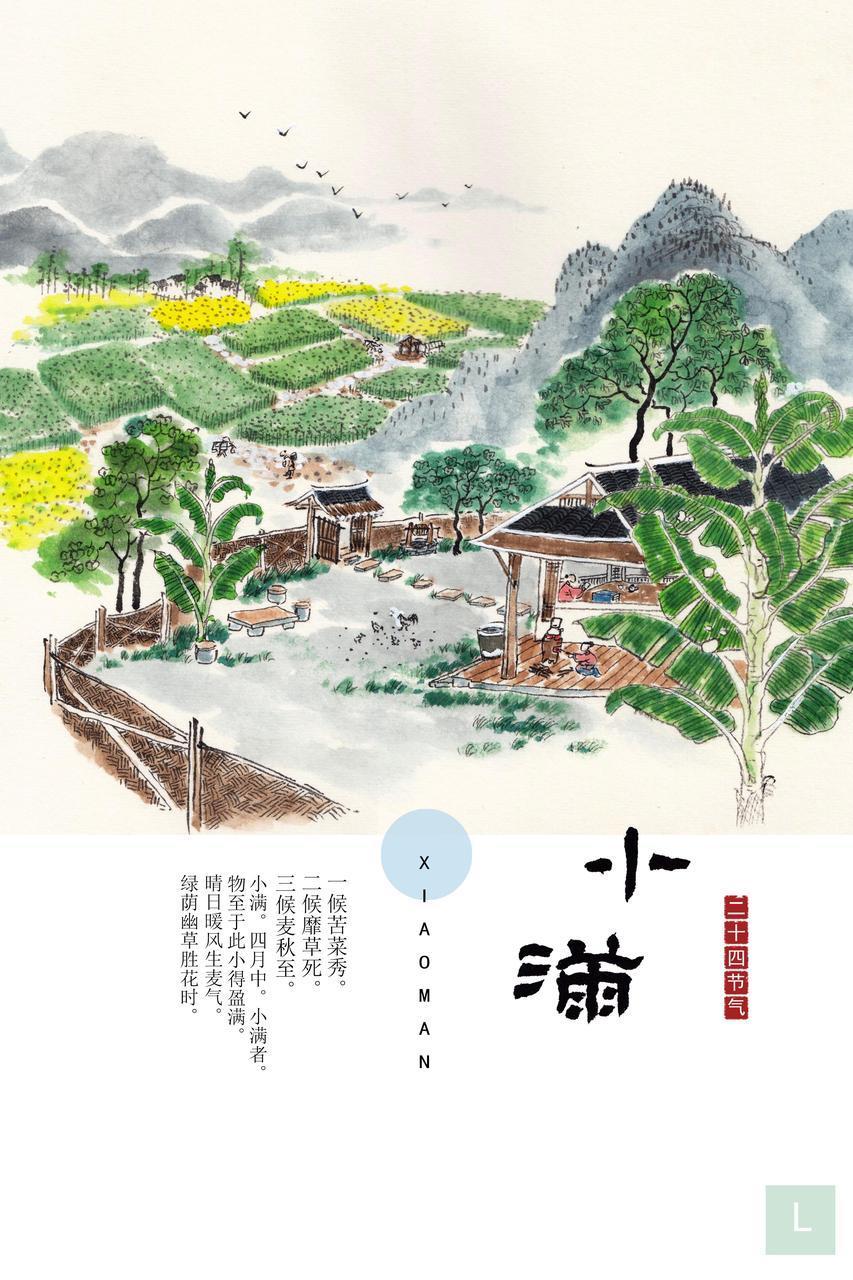 注:詩人筆下的小滿節氣,既具田園牧歌的清新明快,又蘊含道家哲思的深邃悠遠。通過“麥浪搖金”、“梅青杏熟”等意象展現自然物候,以“半卷詩書”、“半壺春茗”傳遞知足常樂的人生態度。結句“枇杷院落,梅子梢頭”化用宋詞意境,將季節物象與人生況味熔鑄爲水墨長卷,體現中國傳統文化的留白之美。