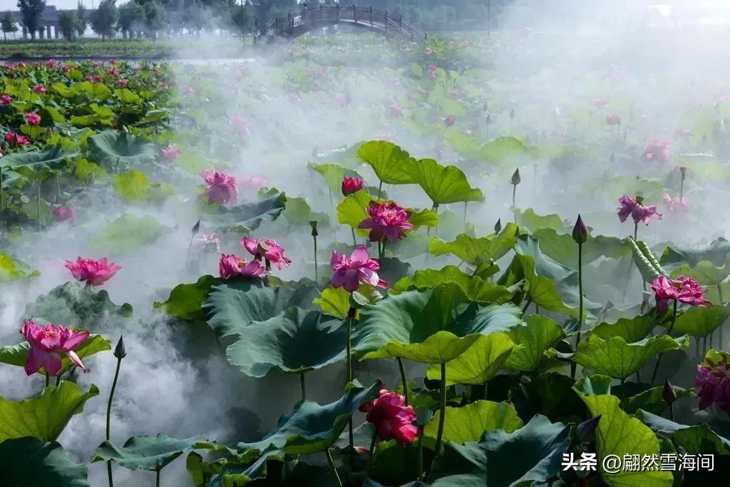 那密密層層的荷葉鋪展開去,像與天相接,一片無邊無際的碧綠青翠。