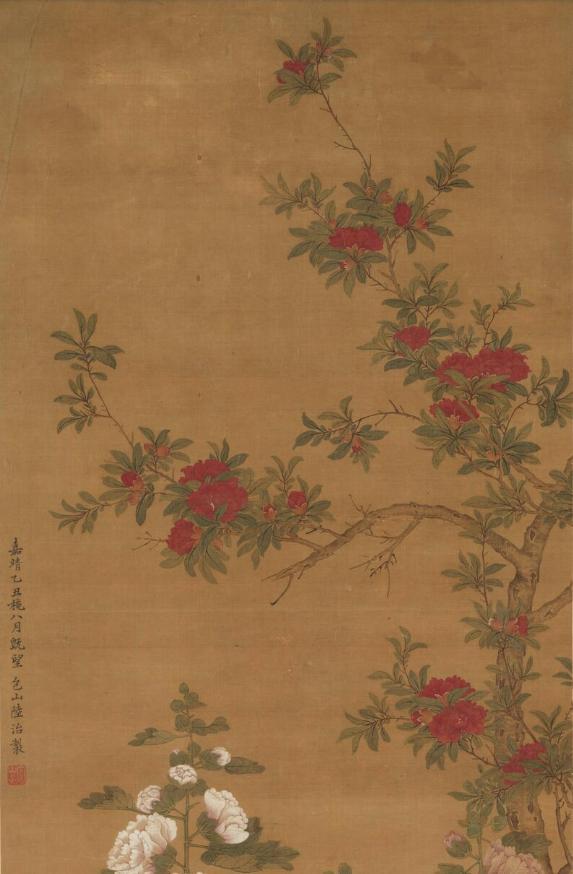 圖 | 明·陸治 (傳)《蜀葵石榴花圖》(局部)| 現藏於美國克利夫蘭藝術博物館
