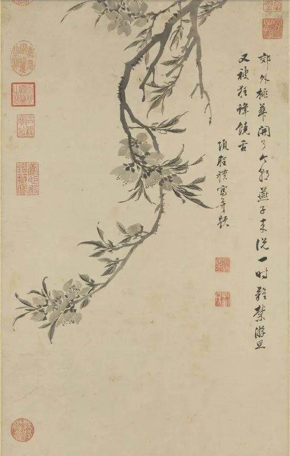 明代項聖謨筆下的桃花雖然是水墨,未曾着色,卻將"桃之夭夭"的意境定格在素淨之上,灼灼其華的花朵彷彿能嗅到清香。