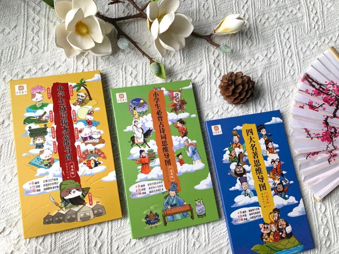 除了《四大名著思維導圖》,詩意文化還出版了《小學生成語接龍思維導圖》以及《小學生必背古詩詞思維導圖》。