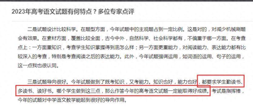 專家提醒,如今的考試導向明確指出要“勤讀書、多讀書、讀好書”