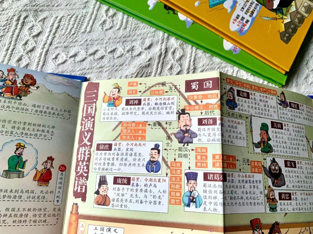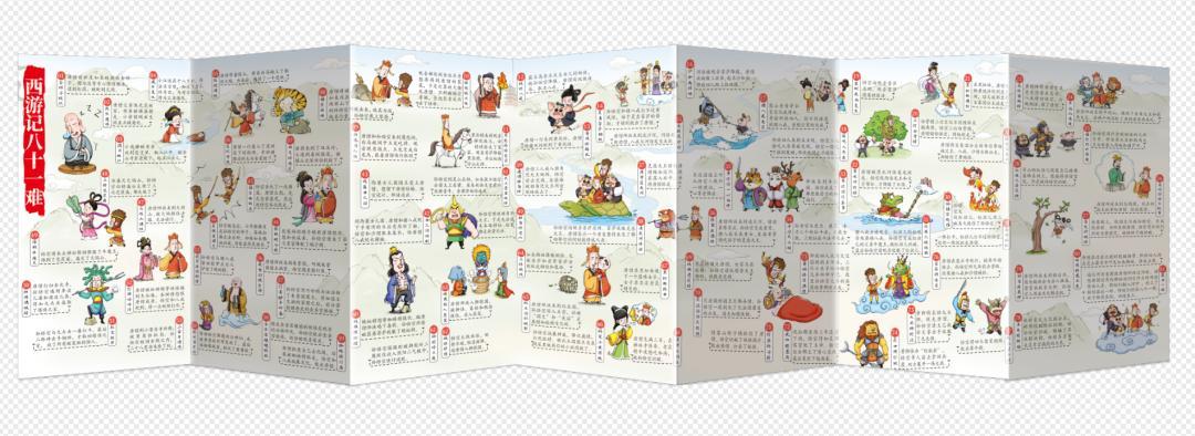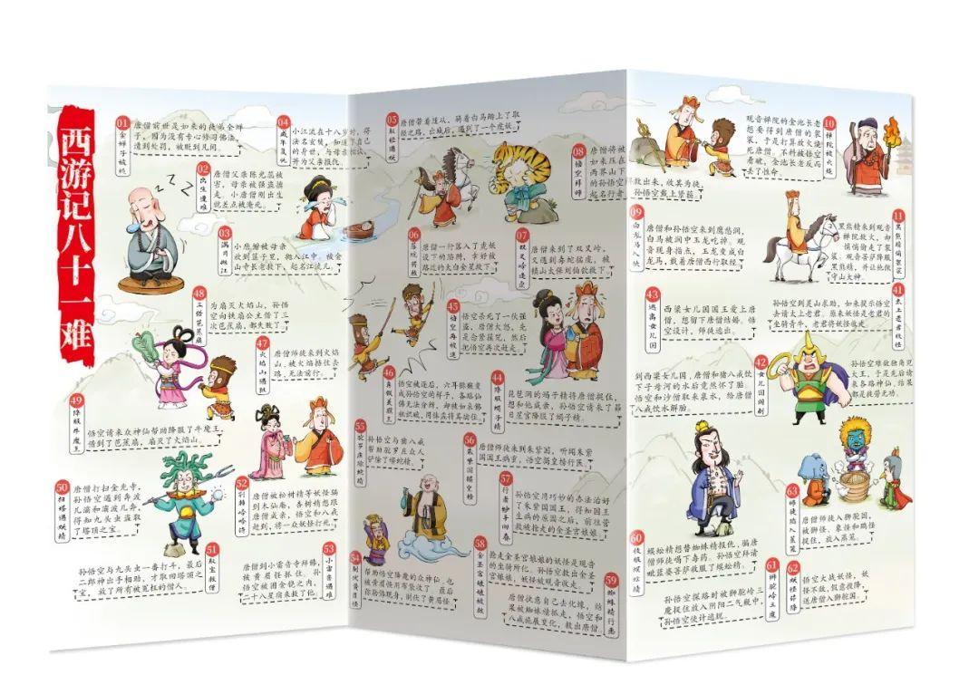 裏面包含西遊記取經路線圖、八十一難圖、三國演義羣英譜、三國演義主要情節導圖、紅樓夢家族關係圖等等多個思維導圖板塊。