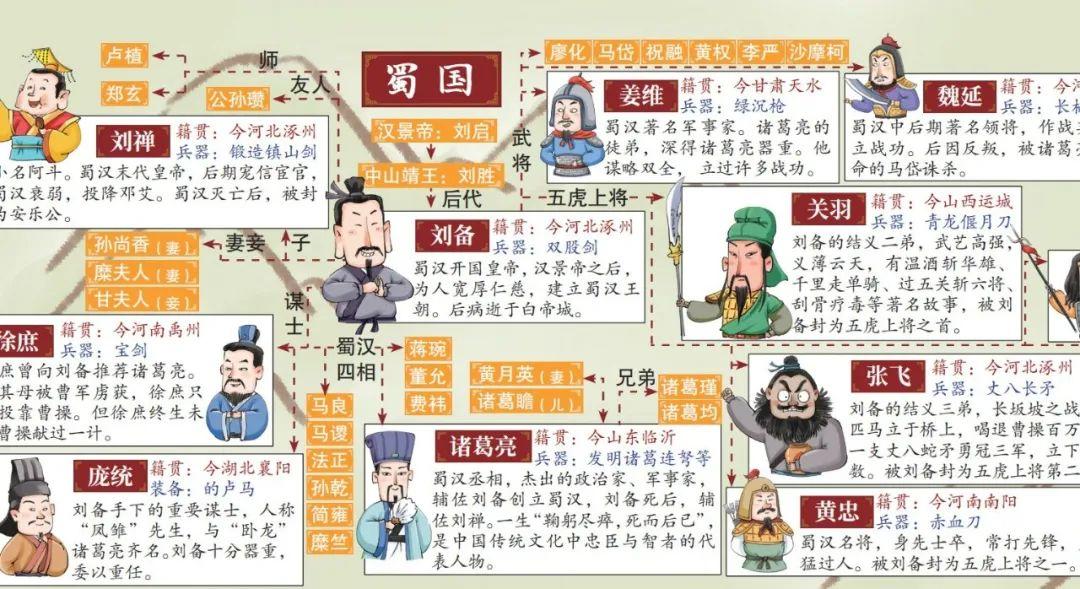 在三國羣英譜這個導圖裏,用那個大時代的羣英爲線索,再加上三國演義主要情節導圖,就可以帶領孩子迅速將三國故事概覽於胸,走近金戈鐵馬的時代。