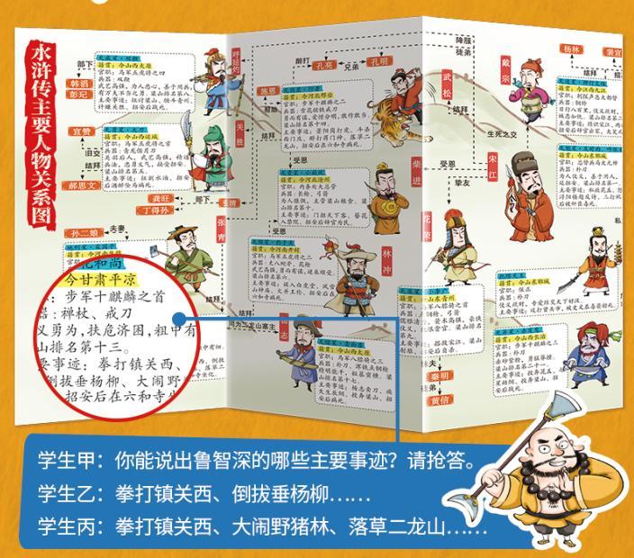 比如《水滸傳人物關係圖》,編輯老師就採用了類似於“英雄卡”的形式來展示。