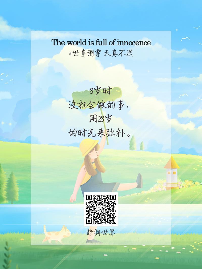 此時此刻的你,無論是8歲,18歲,28歲,還是68歲,78歲,88歲,只要童心未泯,心靈就永遠不會老去。