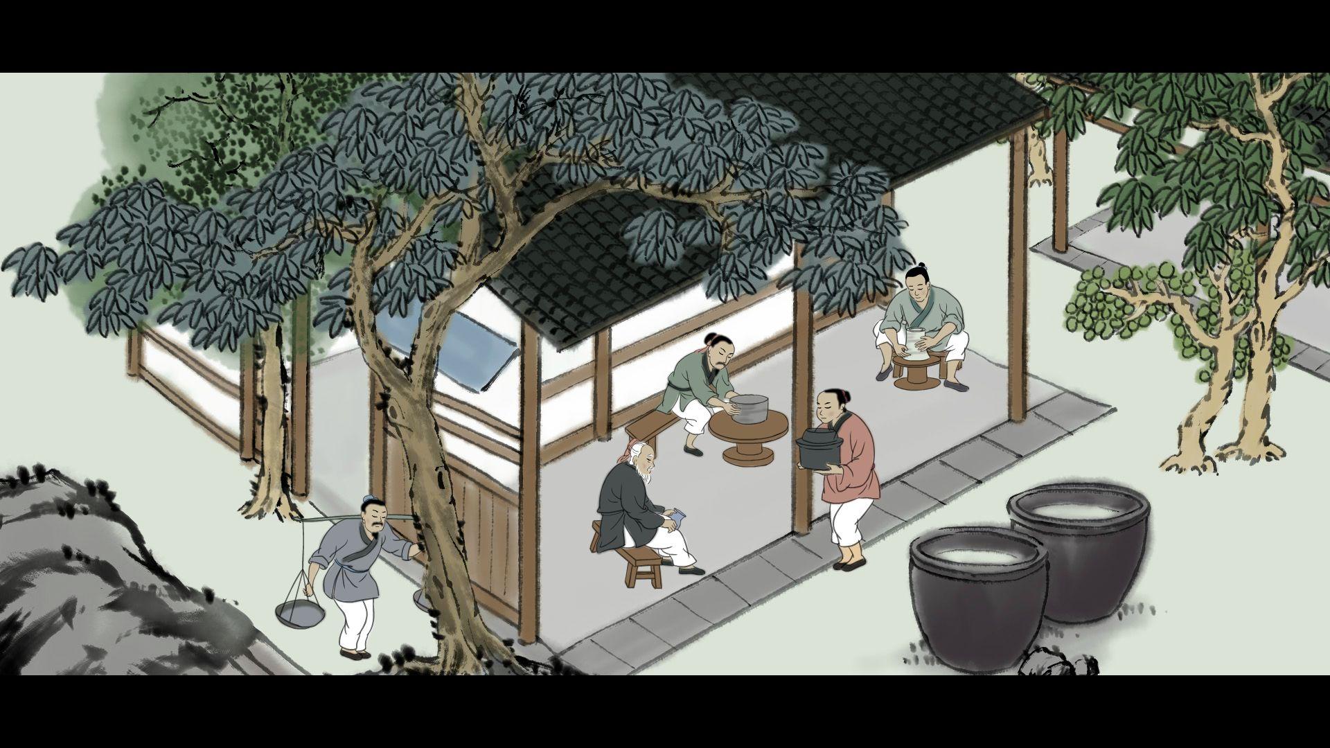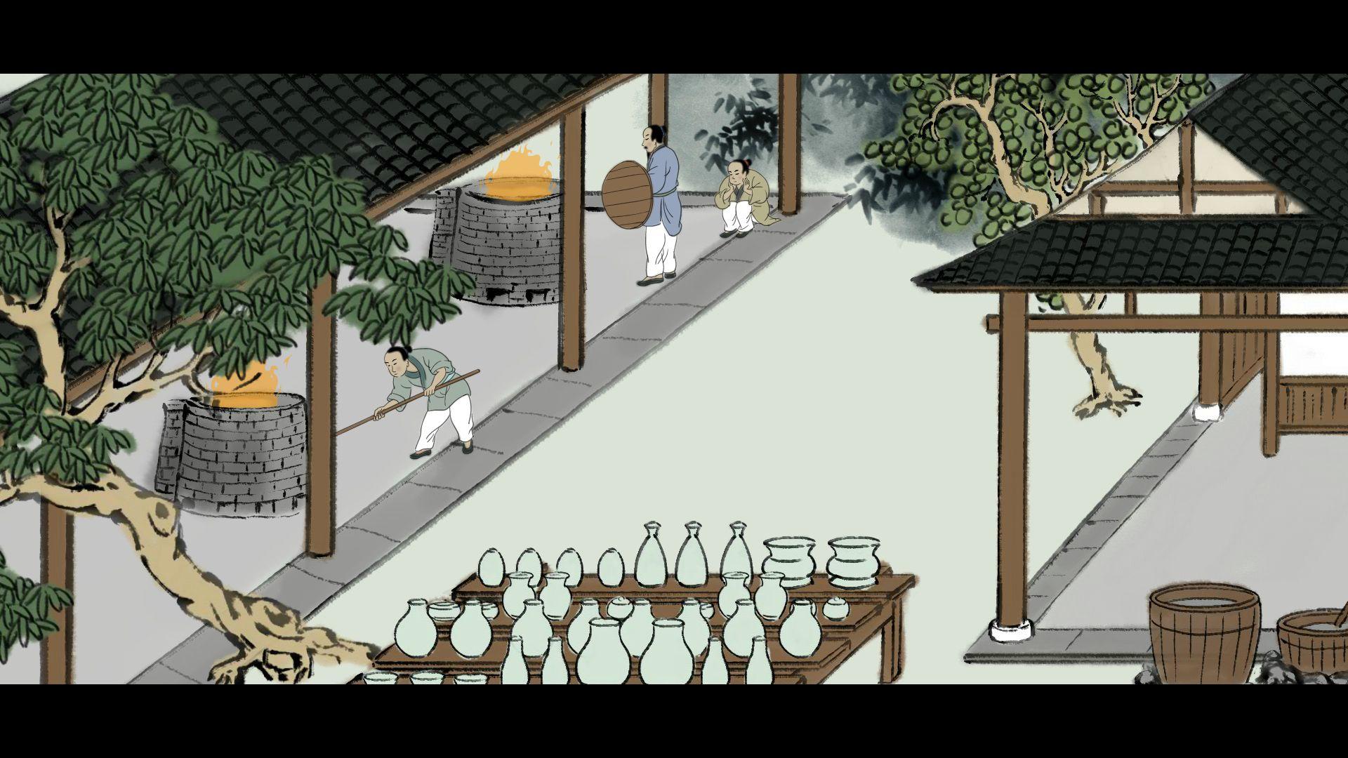 將坯體晾乾、素燒、施釉,然後再晾乾、素燒、施釉,如此反覆三至四次,最後燒製成溫潤如玉的厚釉青瓷。