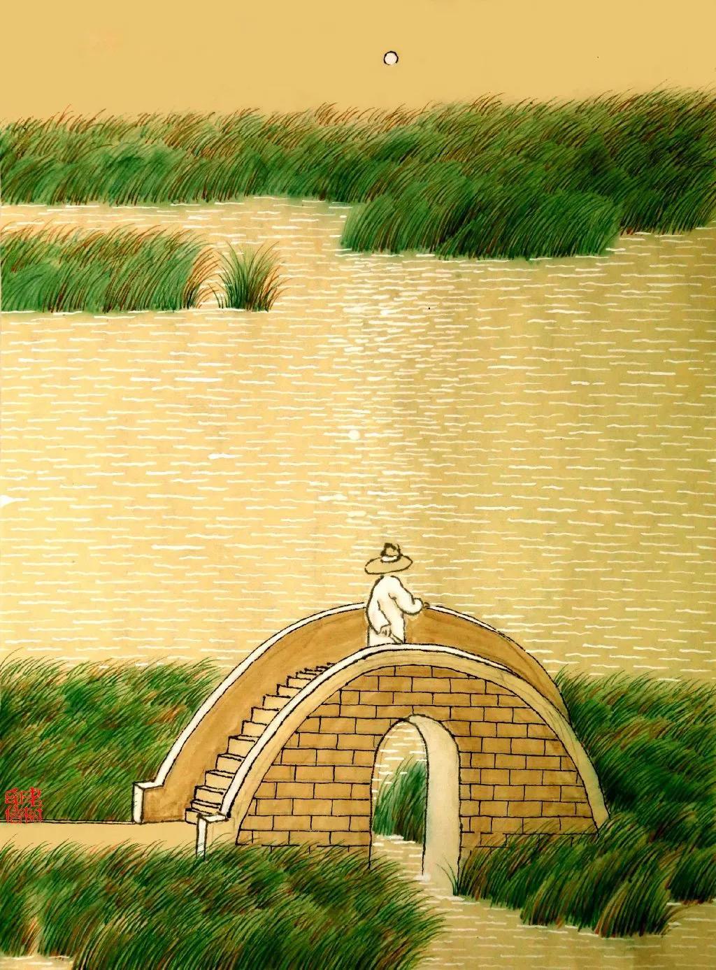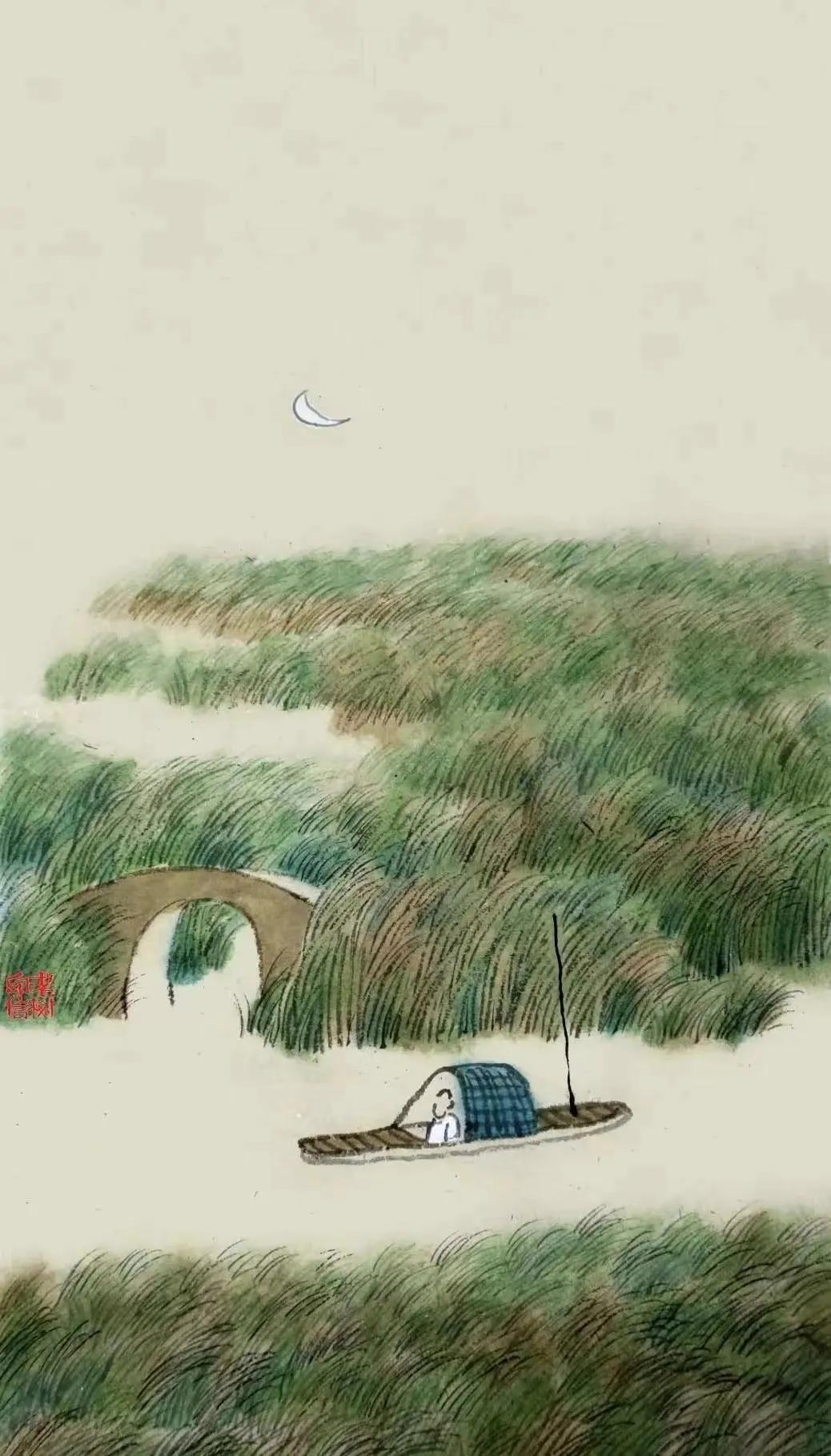 老樹 | 泊舟江湖深處,秋水蒹葭蒼茫。只恨殘月相伴,無你在我身旁