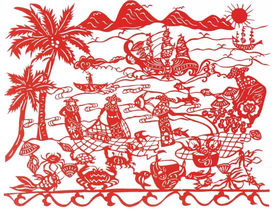 一張紅紙,一把剪刀,在非遺傳承人的手中翻轉騰挪,海洋的浩瀚與神祕便躍然紙上。海洋文化剪紙,是藝術與文化的完美交融,帶我們走進一片獨特的海洋世界。