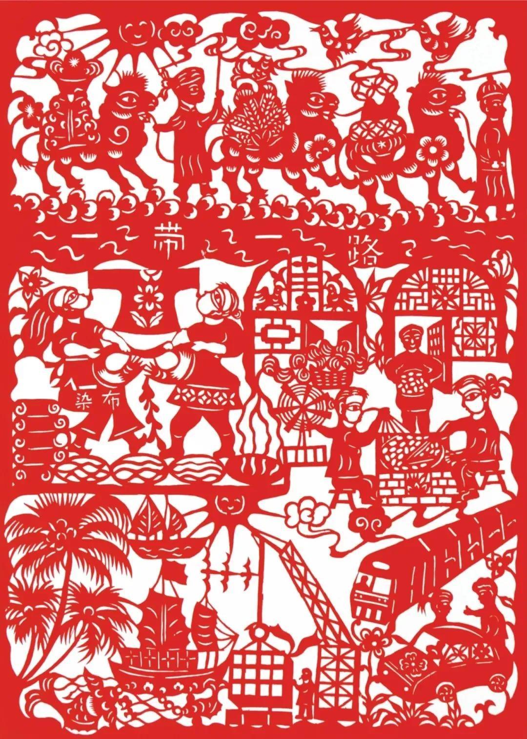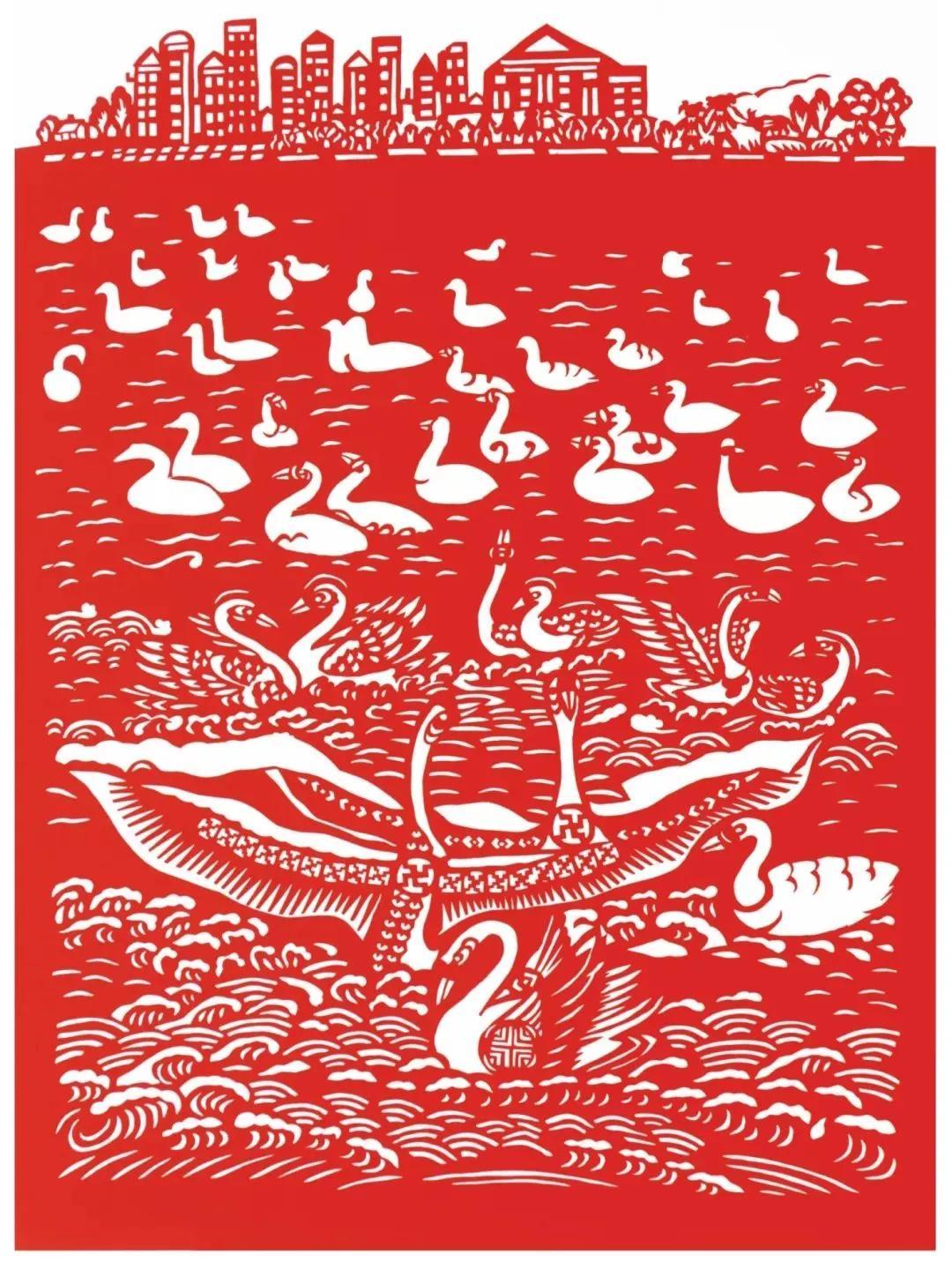 不同的剪紙技法,像陽刻的明快爽朗、陰刻的深沉厚重,賦予作品獨特韻味。