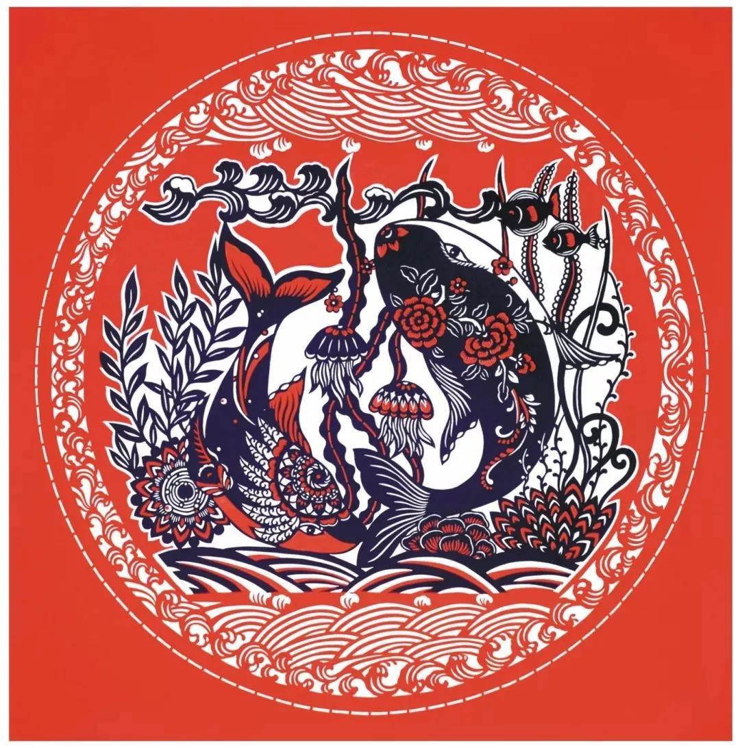 剪紙創作過程充滿匠心。線條流暢細膩,轉折處自然靈動,細微之處如魚鱗、海浪紋也刻畫得一絲不苟。
