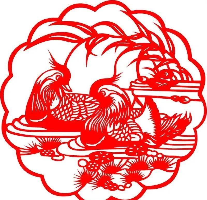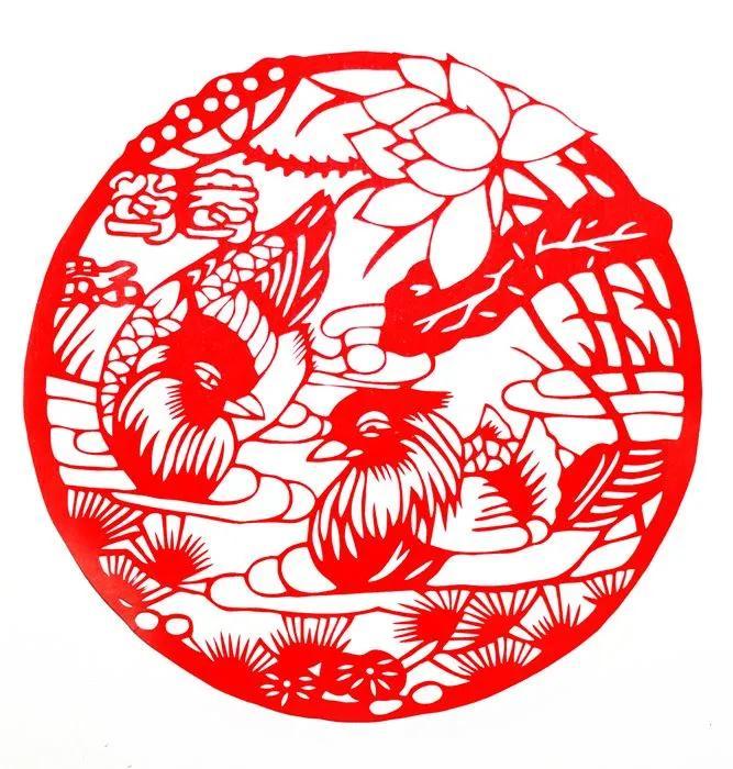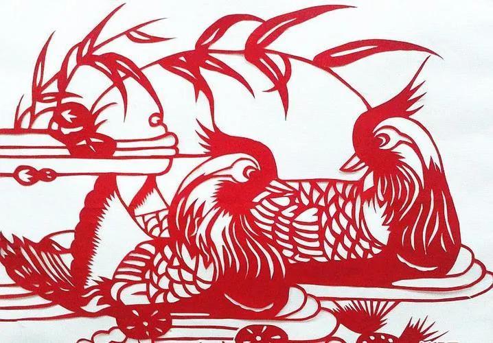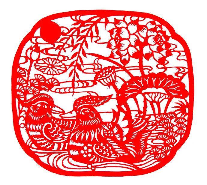 鴛鴦剪紙作品賞析:泥融飛燕子,沙暖睡鴛鴦