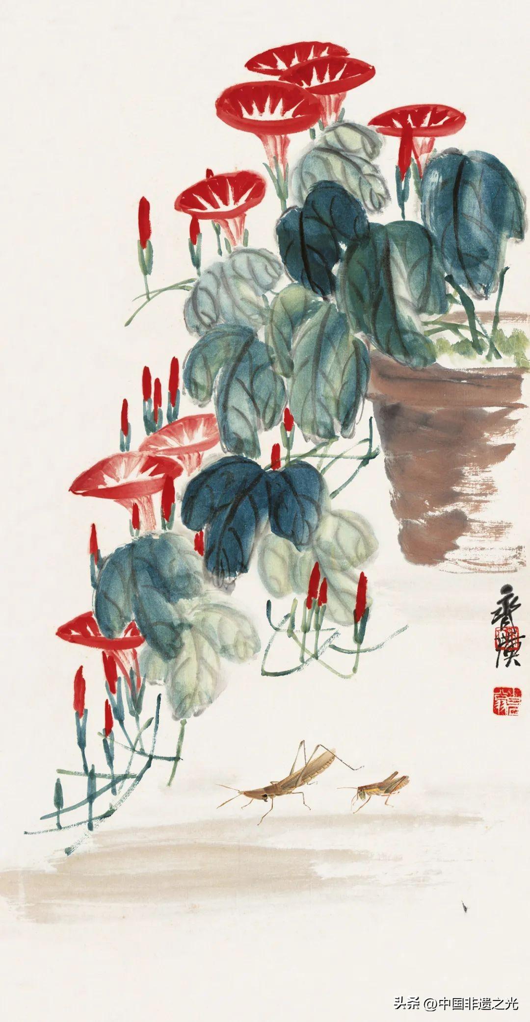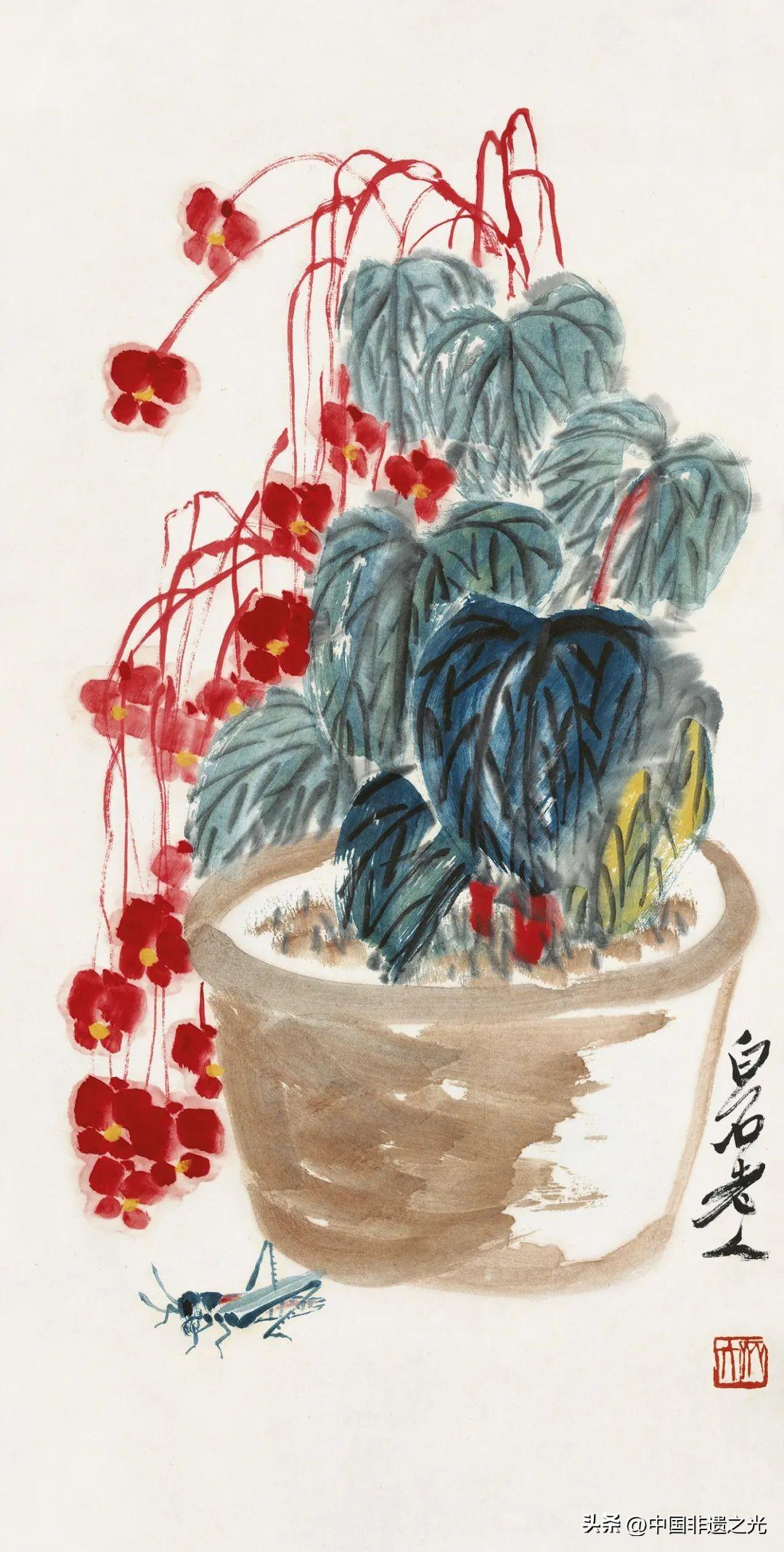 齊白石 秋海棠綠蝗蟲