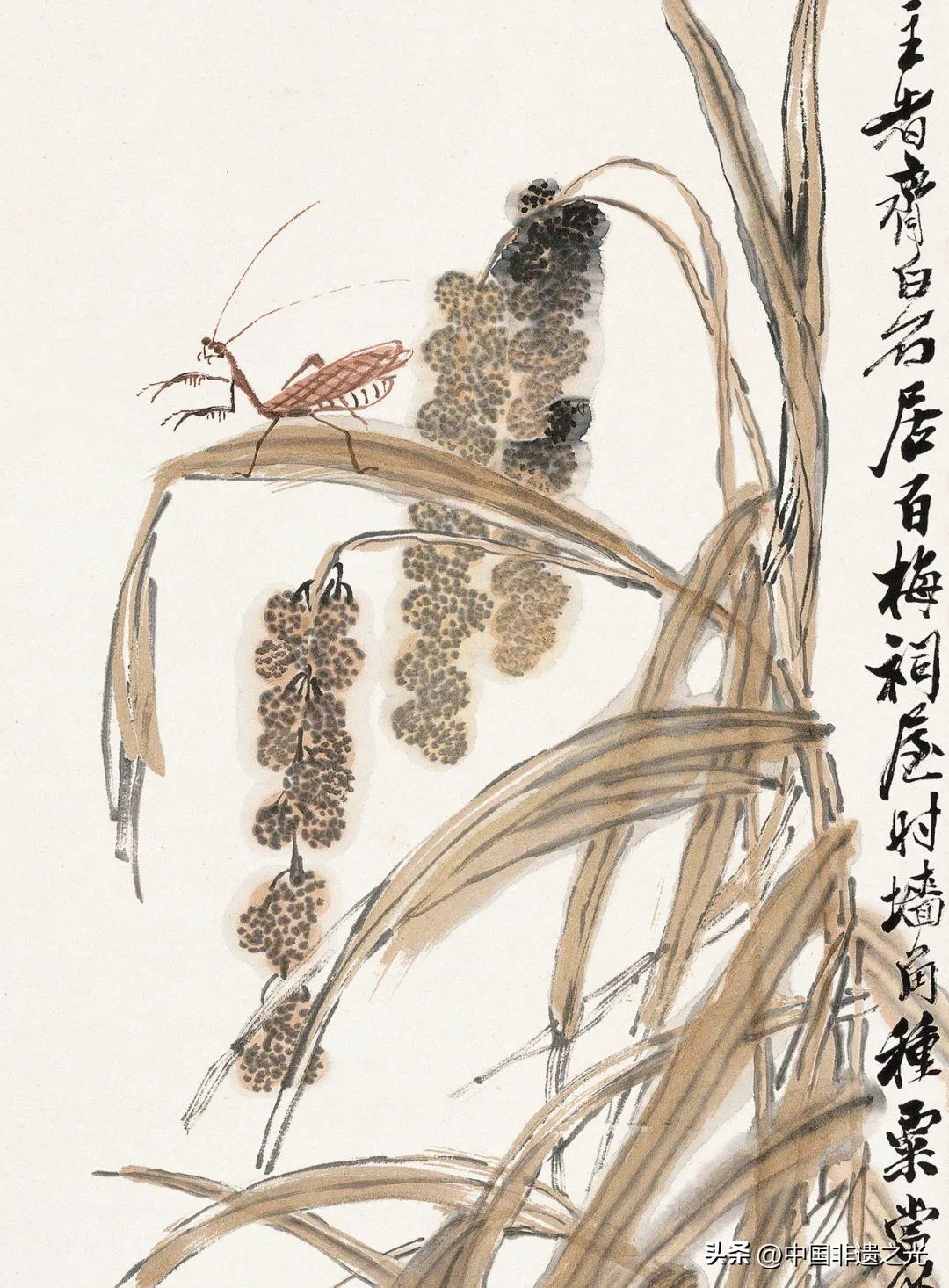 齊白石 穀穗螳螂(局部)