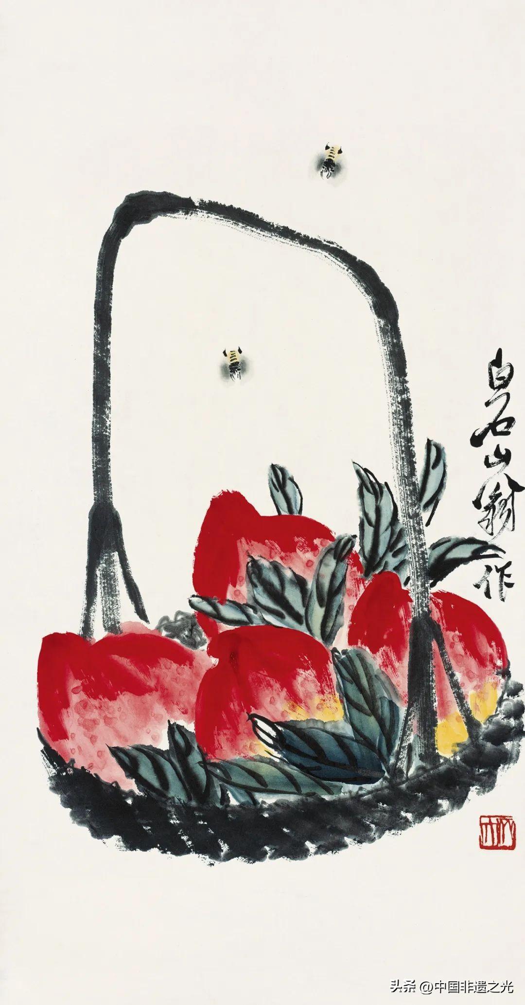 齊白石 桃筐蜜蜂